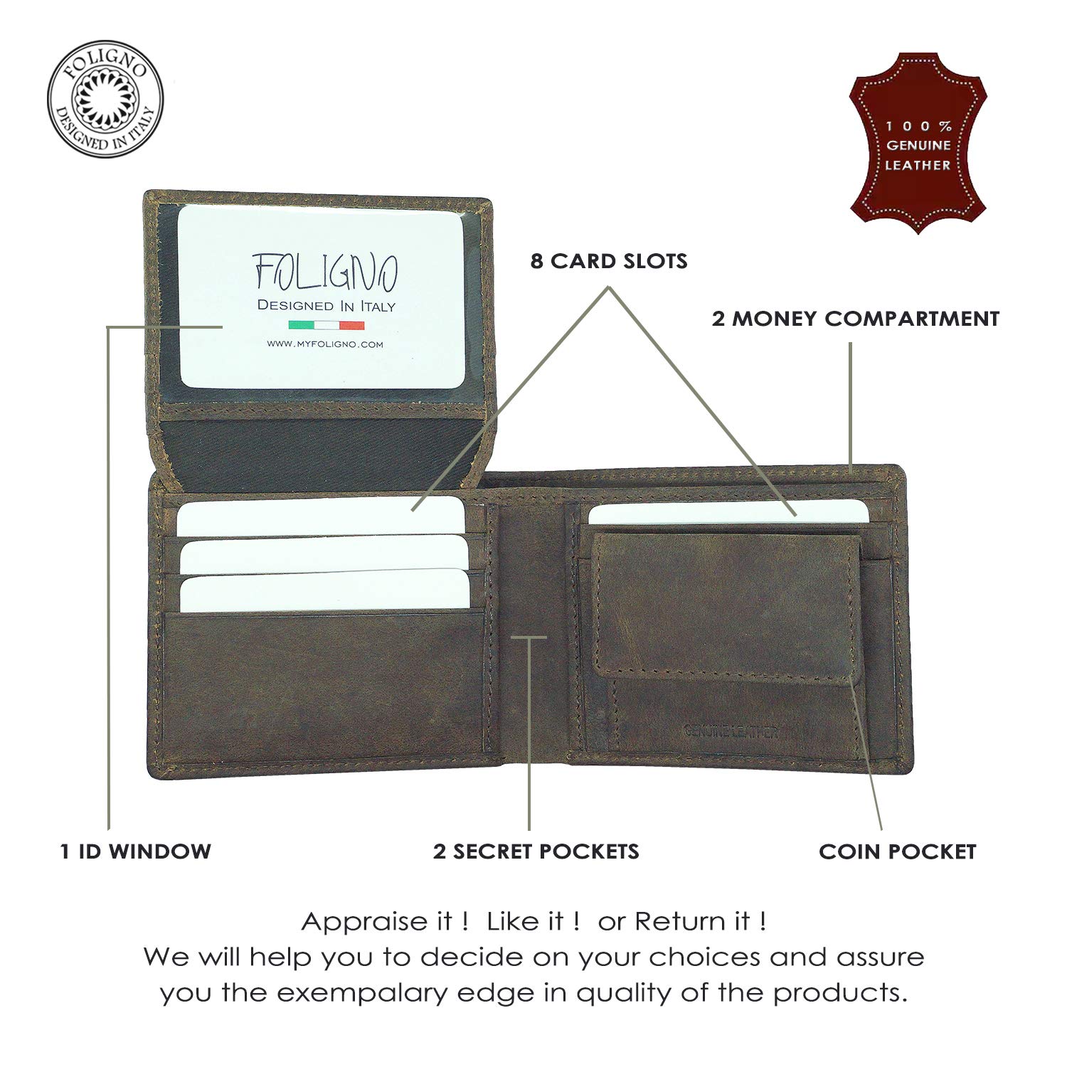 What you see is what you get : COMPACT DESIGN: It holds 10+ cards and lots of cash!, 2 ID windows (DL & Other ID Cards) allowing for quick access with 8 card slots and 2 more slots behind them, making this bifold/tri-fold wallet superb for travel, and everyday use, keeping cards safe and organized! SLIM DOWN YOUR POCKET Measuring just 3 1/2" x 4 1/2", it is the perfect size to fit in your pocket without bulging out