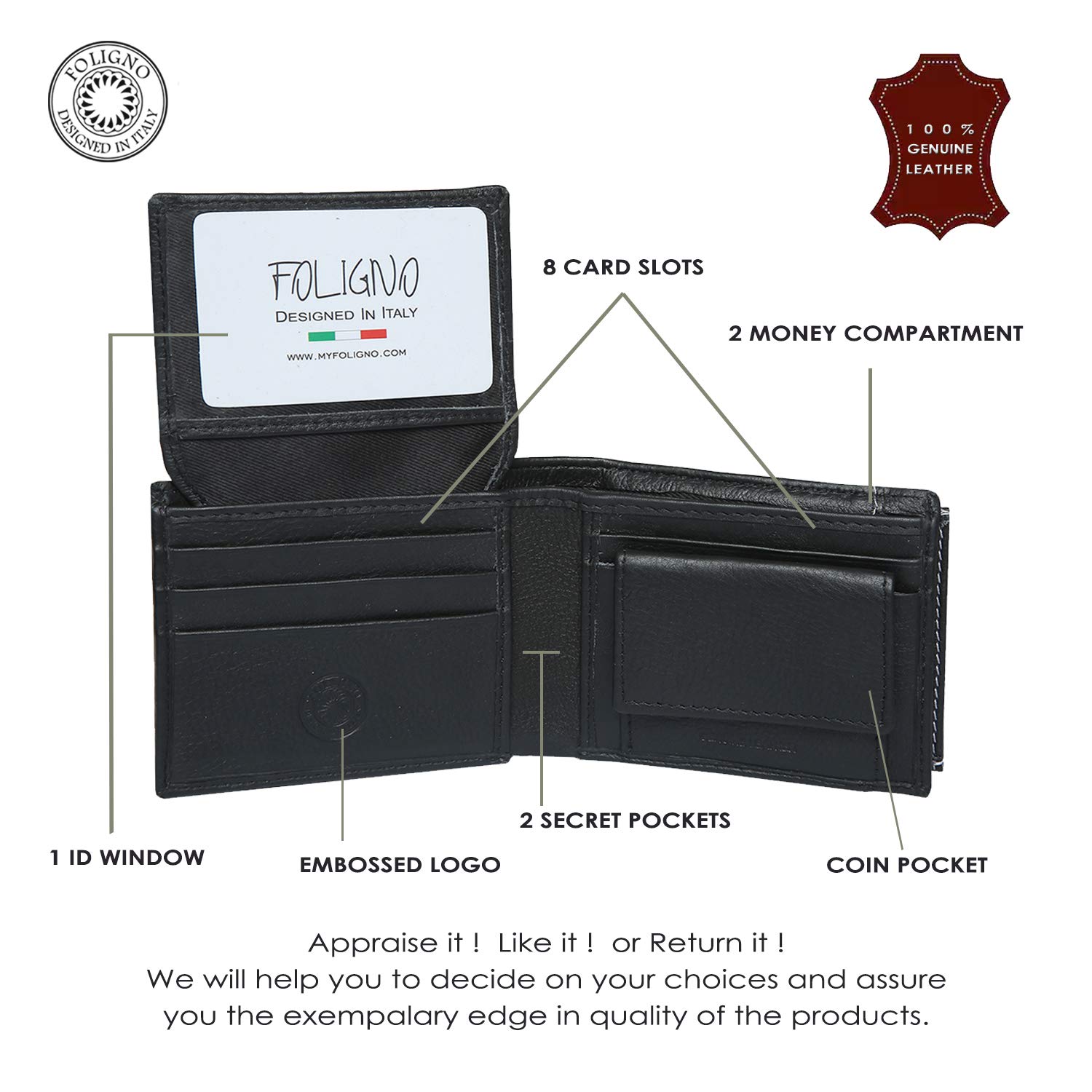 What you see is what you get : COMPACT DESIGN: It holds 10+ cards and lots of cash!, 2 ID windows (DL & Other ID Cards) allowing for quick access with 8 card slots and 2 more slots behind them, making this bifold/tri-fold wallet superb for travel, and everyday use, keeping cards safe and organized! SLIM DOWN YOUR POCKET Measuring just 3 1/2" x 4 1/2", it is the perfect size to fit in your pocket without bulging out