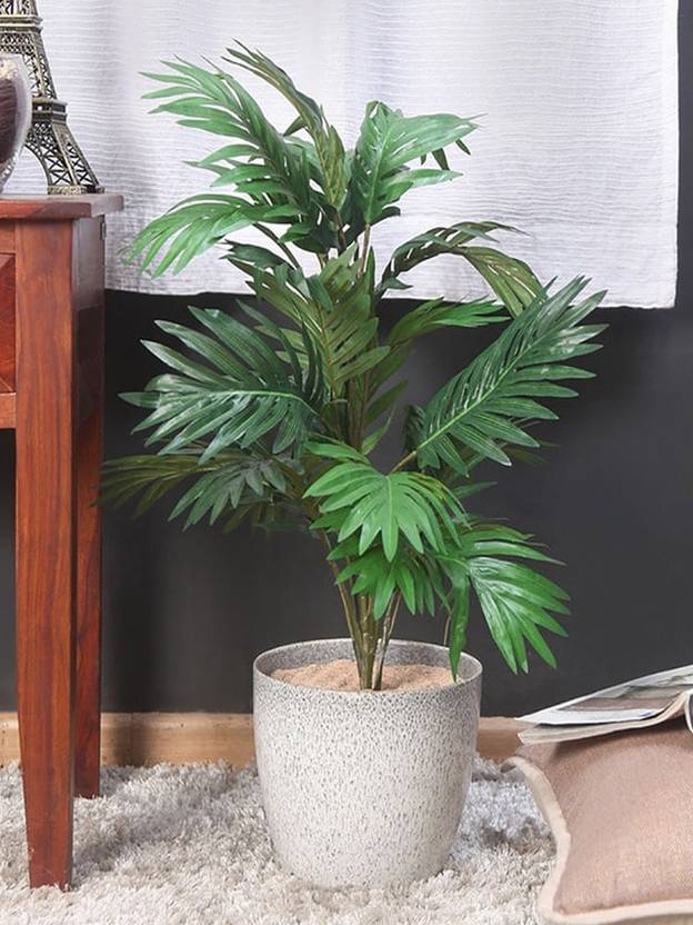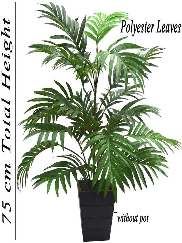 - Material: synthetic, color: green, Package contents: 1 artificial areca plant and 21 leaves, Item size: 75 cm (tall),Natural looking artificial plant (comes without pot),Areca plant with 21 branches, Comes in a single package, You may require a suitable pot along with this product, Care instructions: to be used for indoor purpose only,