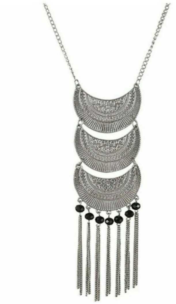 Foxy Trend Silver Oxidised Classy Designer Crystal Beaded Drop Luxury Hot Selling Afghan Tribal Afghani Necklace |
