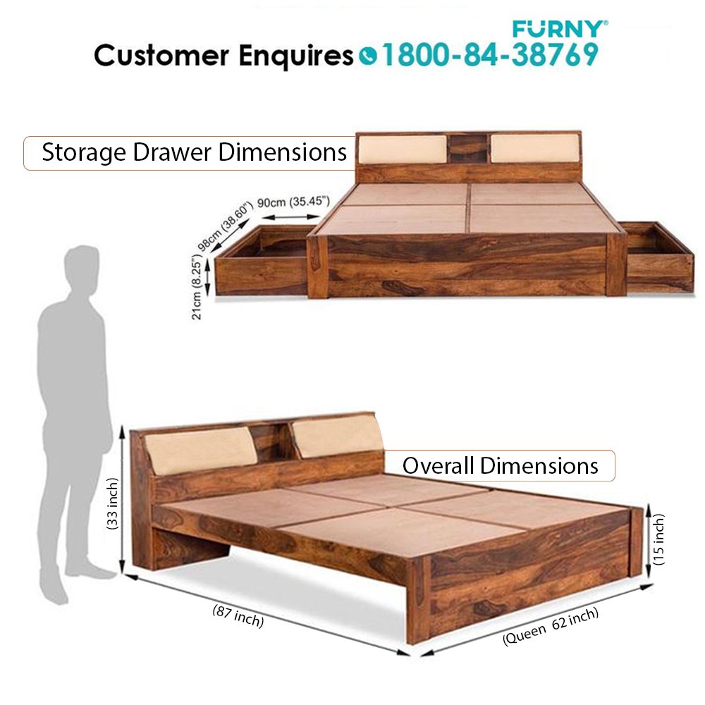 Bed Dimension - Length (87 In), Width (62 In), Height (33 In) // Drawer Dimension - Length (39 In), Width (29 In), Height (10.5 In) // Recommended Mattress Size - Length (78 In), Width (60 In) Mattress is not part of Order