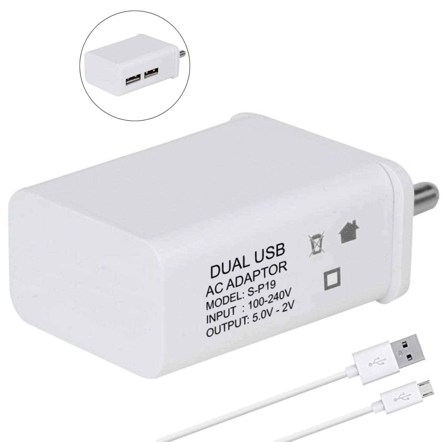 Dual Port Fast Charger - This dual-port wall charger lets you charge two mobile devices at once, using a single wall charger, so you won't have to wait until one of your devices is fully charged before charging another. Charging single device gives an output of 2.5A and two device used simultaneously gives a divided output.
