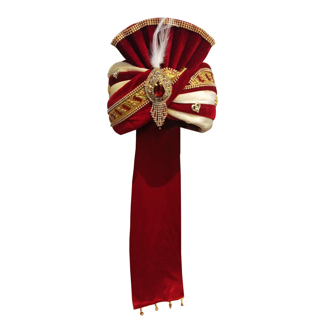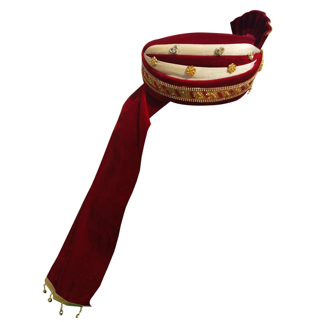 We are Present the Indian Traditional ethnic Turbans which are perfect for all occasion. This Turban covers vibrant and essence of Rajputana. It is beautifully crafted using superior quality and classy good quality material. A ready to wear product. This elegant turban adds a classic touch to your occasion. A royal Maharaja look for Indian Wedding Groom. |