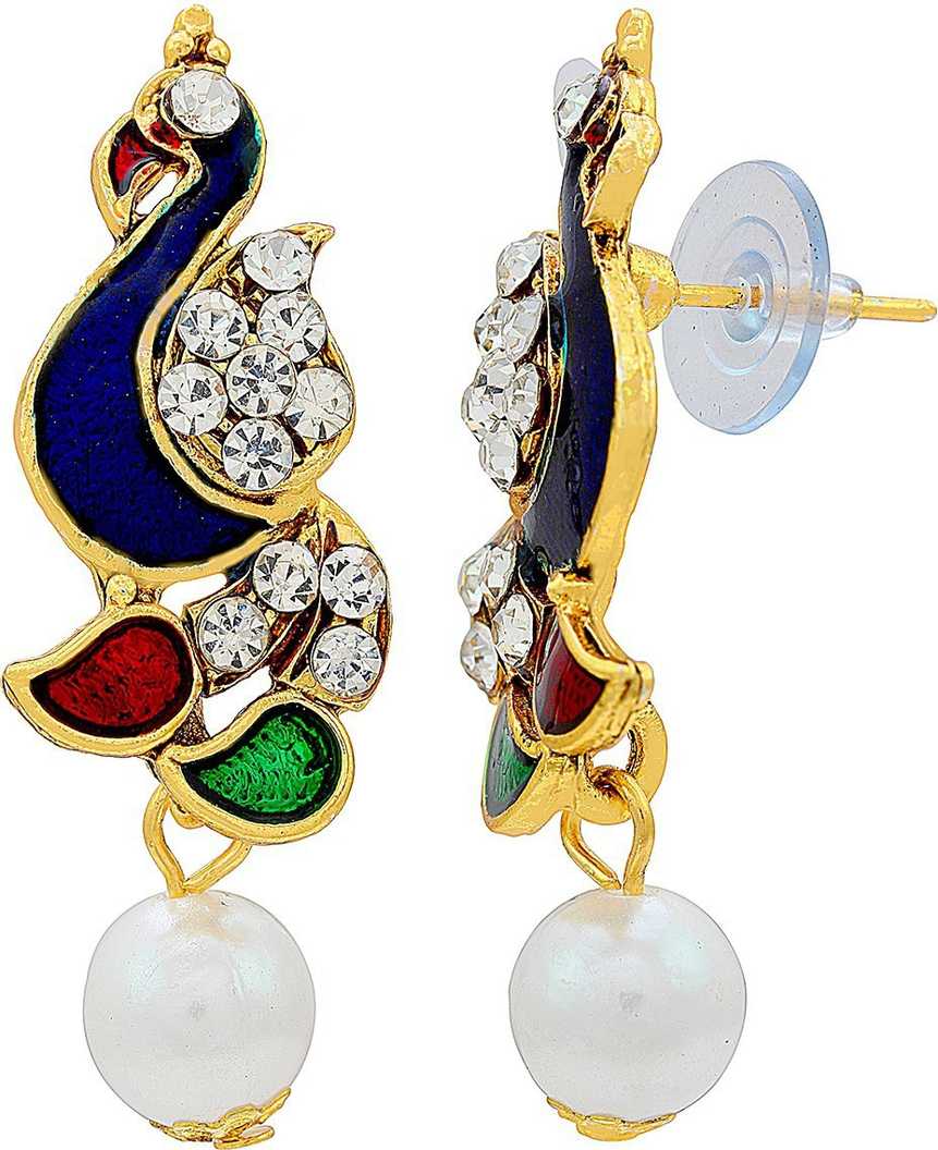 Gold Plated Handcrafted Meenakari and CZ Dancing Peacock Designer Earring |