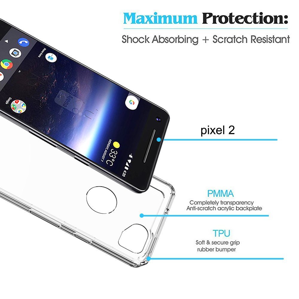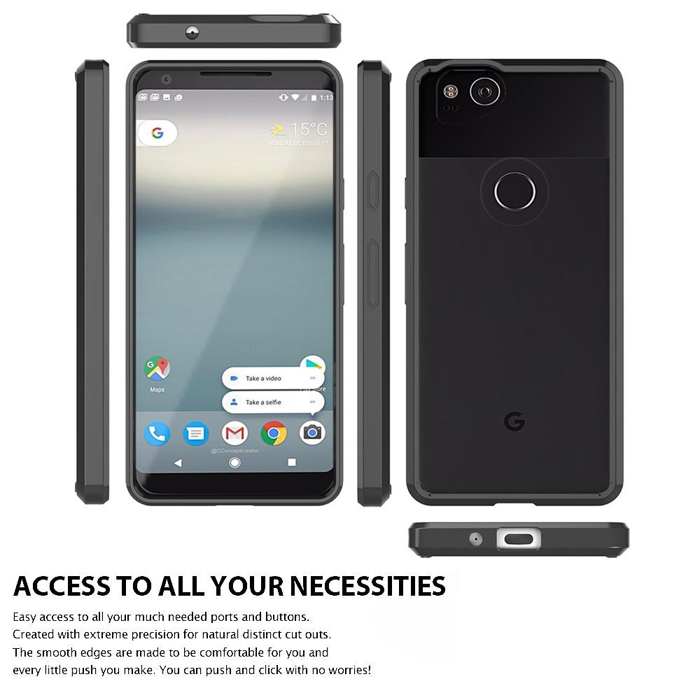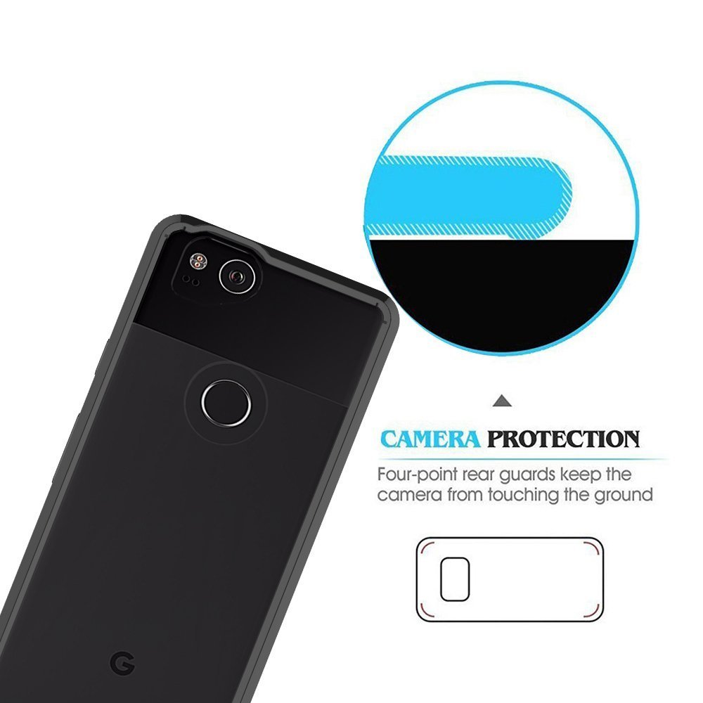 Google Pixel 2 Case, Kaleidio [Scratch Resistant] Hybrid TPU Bumper [Slim Fit] Transparent Back Panel Skin Cover [Includes a Overbrawn Prying Tool] [Clear/Black]