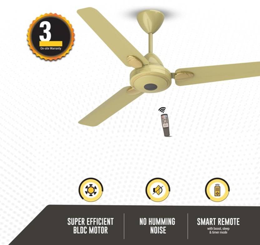 Ceiling fans just got a whole lot cooler with this Gorilla 3-Blade Ceiling Fan. It comes with a remote which you can use to set the fan to Sleep, Boost, or Timer mode. Not one to disregard your need for an appliance which plays along with your chic home decor, this fan boasts a sleek metallic finish. Energy-efficient Performance Operating on about 28 W of energy even at the highest speed, this ceiling fan requires lesser electrical energy than regular fans. Reliable BLDC Motor The use of thicker windings and permanent magnets improve the fan’s motor life. One Remote for Everything ‘Smart’ in more ways than one, you can set this fan to automatically turn off after a fixed time (Off Timer). The remote also features the Boost Mode and the Sleep Mode which reduces the speed of the fan after every two hours. A Quiet Operation Sleep with the fan on if you want to; there’s no worry about the humming sounds of the fan in operation threatening a peaceful rest. This fan is also designed to not heat even after long hours of operation. Wide Operating Voltage It functions normally even at high voltages.