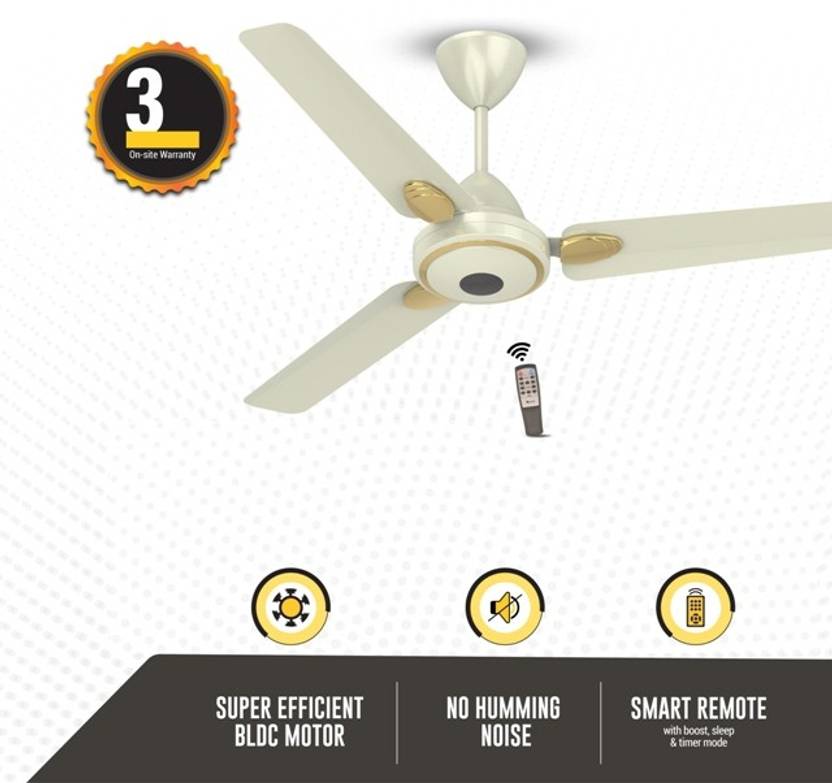 With the Gorilla E1-1200PI Ceiling Fan, summers will no longer be sweaty, exhausting, and annoying in your home. This essential home appliance features a BLDC Motor, Smart Remote, and a Stylish Metallic Finish. Save Money This fan consumes 28 W to function and helps you to save money on your electricity bill. BLDC Motor for Improved Reliability and Longevity The BLDC Motor comes with thick windings and permanent magnets that increase its reliability and longevity. Smart Remote with Various Modes The smart remote comes with various Modes, such as Boost, Sleep, and Timer. The Off Timer Mode turns off the fan after the set number of hours. The Sleep Mode reduces the fan speed every two hours. No Humming Sound, No Heating This fan does not heat or make any humming sounds even after many hours of operation. 5 Star-rated This fan only consumes about 28 W even at its highest speed, which makes it energy efficient. Wide Operating Voltage Range With a wide voltage range of 110 V - 285 V, this fan runs at a constant speed even during high voltage fluctuations. It is also protected against high voltage to ensure durability. Metallic Finish The attractive metallic finish of this fan complements the interior of most modern homes.
