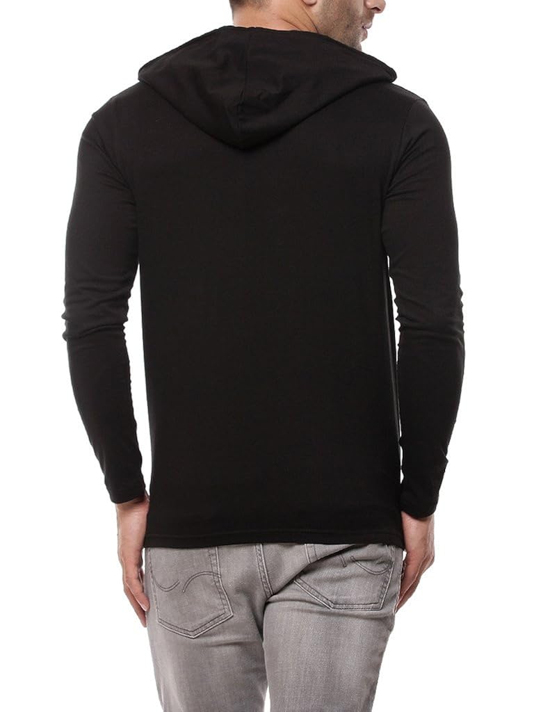 Gritstones Black Full Sleeve Hooded T Shirt GSFSHD1289BLK