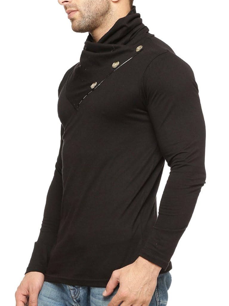 GRITSTONES Men's Cotton Varsity Full Sleeve Shawl Collar T-Shirt