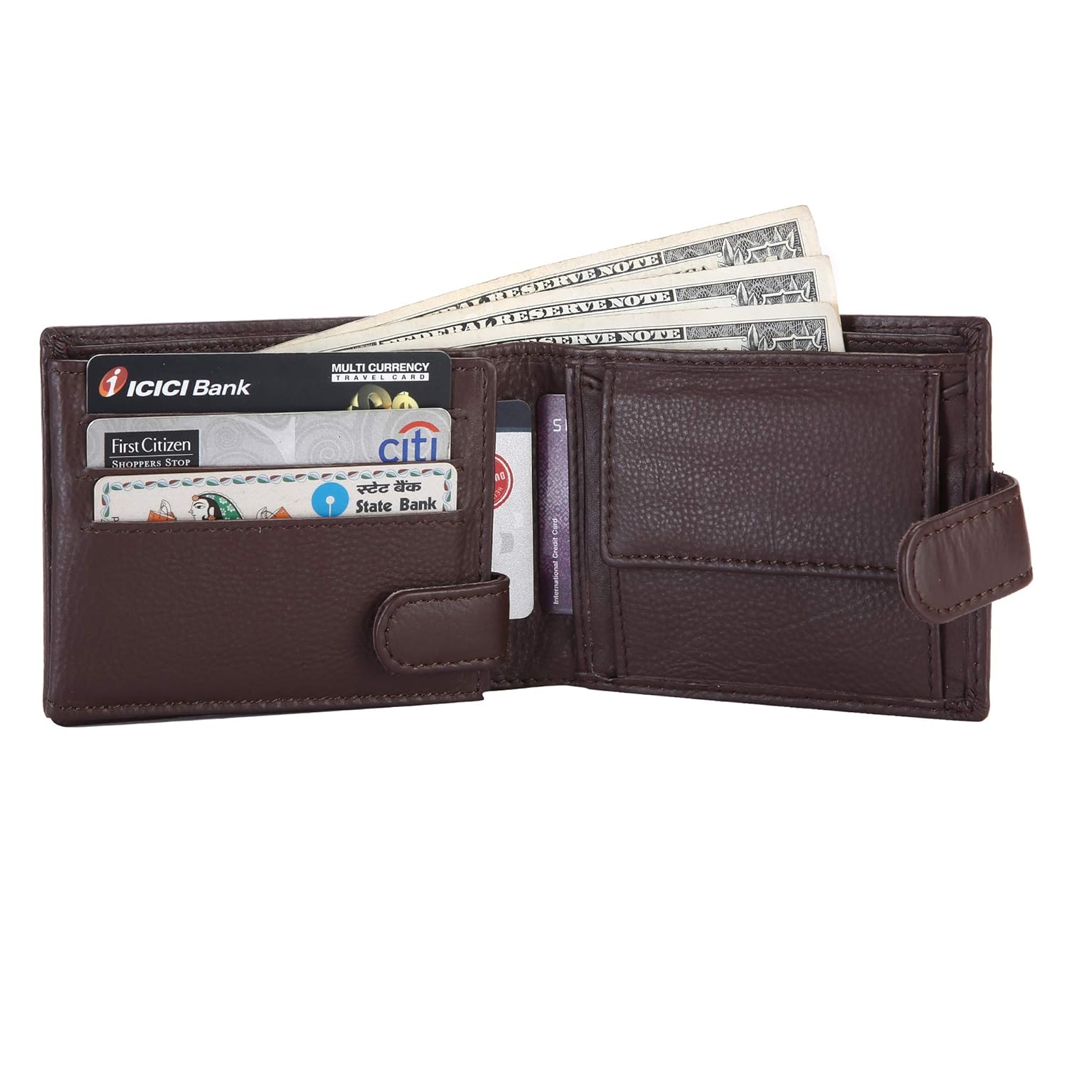 FEATURES: Attractive and stylish wallet for Men's. It comes with 3 Card slot, 2 note compartments with 1 coin pocket including 2 hidden card slot, upper pocket with 3 card slot and one ID card slot .