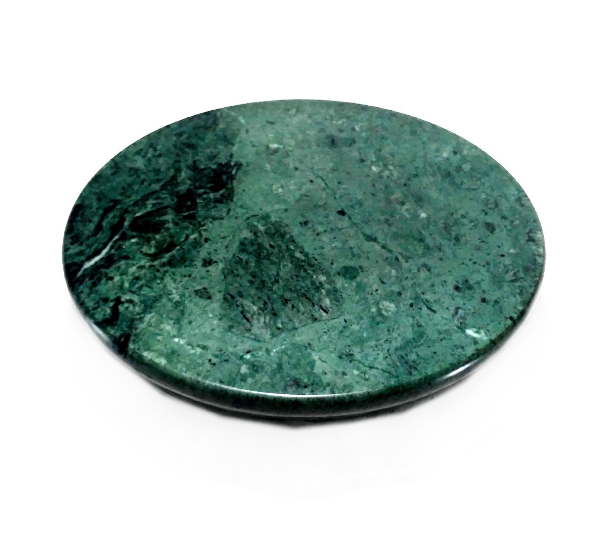HALO NATION Green Marble Chakla - 9 Inches Diameter - Block Base Rolling Pin Board - from Banks of Holy River Narmada