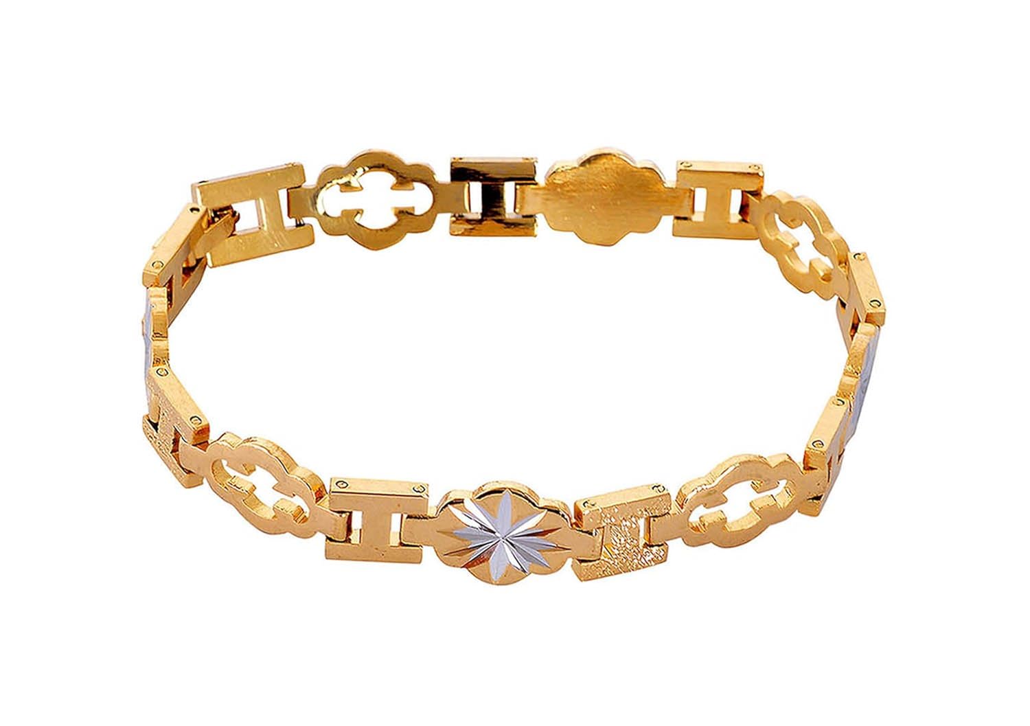 The product in display is made from gold plated material and is finished in an attractive gold color. Furthermore, this product features a box safety clasp, and a design that renders it with the versatility to be worn as a anniversary occasion wear. |