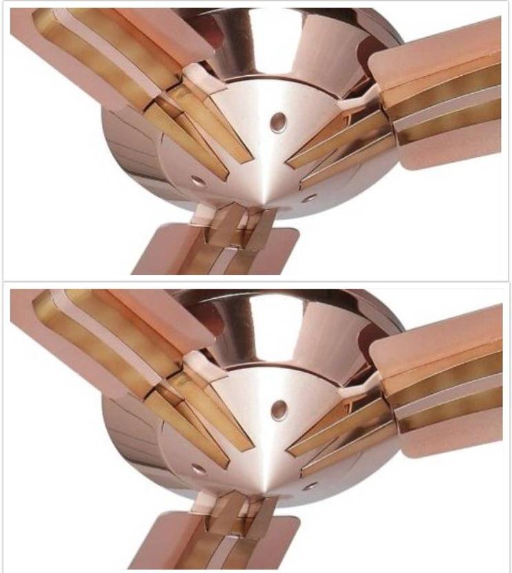 SWEEP 1320MM, ELECTROPLATED BLADE TRIMS EXTENDED TILL MOTOR, EXOTIC ELECTROPLATED RING ON MOTOR WITH ENHANCED AESTHETICS, UNIQUE MOUNTING OF BLADES ON BOTTOM SIDE OF MOTOR