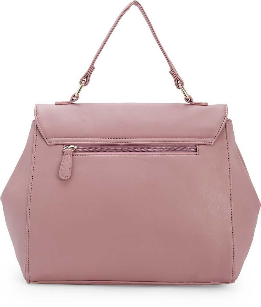 Super stylish flap satchel with embossed front and snap clasps on either sides for a compact look. |