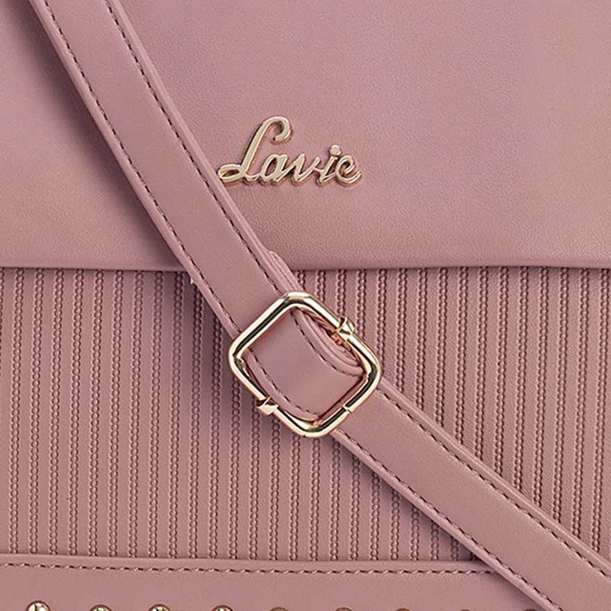This super stylish bag from Lavie is totally a must have in your collection. This bag has embossed front and snap clasps on either side for a compact look. And also got multiple metal studs on the bottom for that extra bling. Club it with a pair of classic black denim and solid colored short top for a casual dinner with friends. |