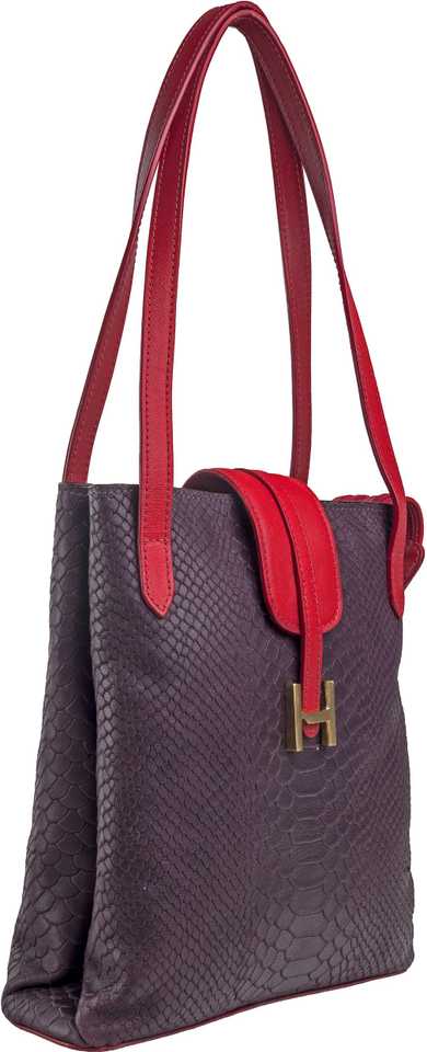 This small snake embossed shoulder bag is perfect for the day. With just the right amount of compartments and pockets as well as a handcrafted brass 'H' fitting in front, this bag is smart enough to get you noticed.