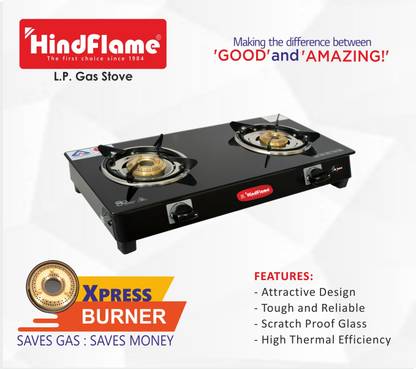 Hindflame is an ISO 9001-2015 Quality Endorsed company, Certified by BIS Govt.of India. 'Making the Difference Between GOOD and AMAZING' is a Sleek and Compact Glass Cooktop for your kitchen! The speciality of this Glass Cooktop is that it is compact in size and thoughtfully designed to consume less counter space. It has shatter proof 7 MM toughened glass for longer life and convenient cleaning. It has Xpress Burner technology which comes with highly Efficient Brass Plated Cast Iron burners, which helps you to cook faster and more efficiently, leading to huge gas savings. It is an example of combination of performance, efficiency and good looks and a great value for money product. The compact design of the stove saves you a lot of counter-top space. It gives an Eco-friendly Blue Flame That helps to saves 15% of your Gas compared to others. It has lowest %age of carbon Monoxide & carbon dioxide is less than 0.02%, making it an eco-friendly cooktop.