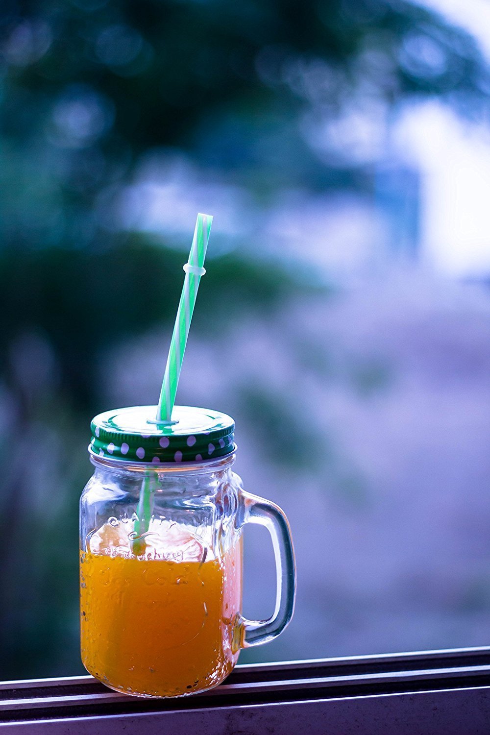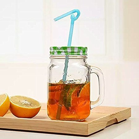 HKC HOUSE Mason Glass Jar Mug with Straw and Handle(Clear) - Pack of 2