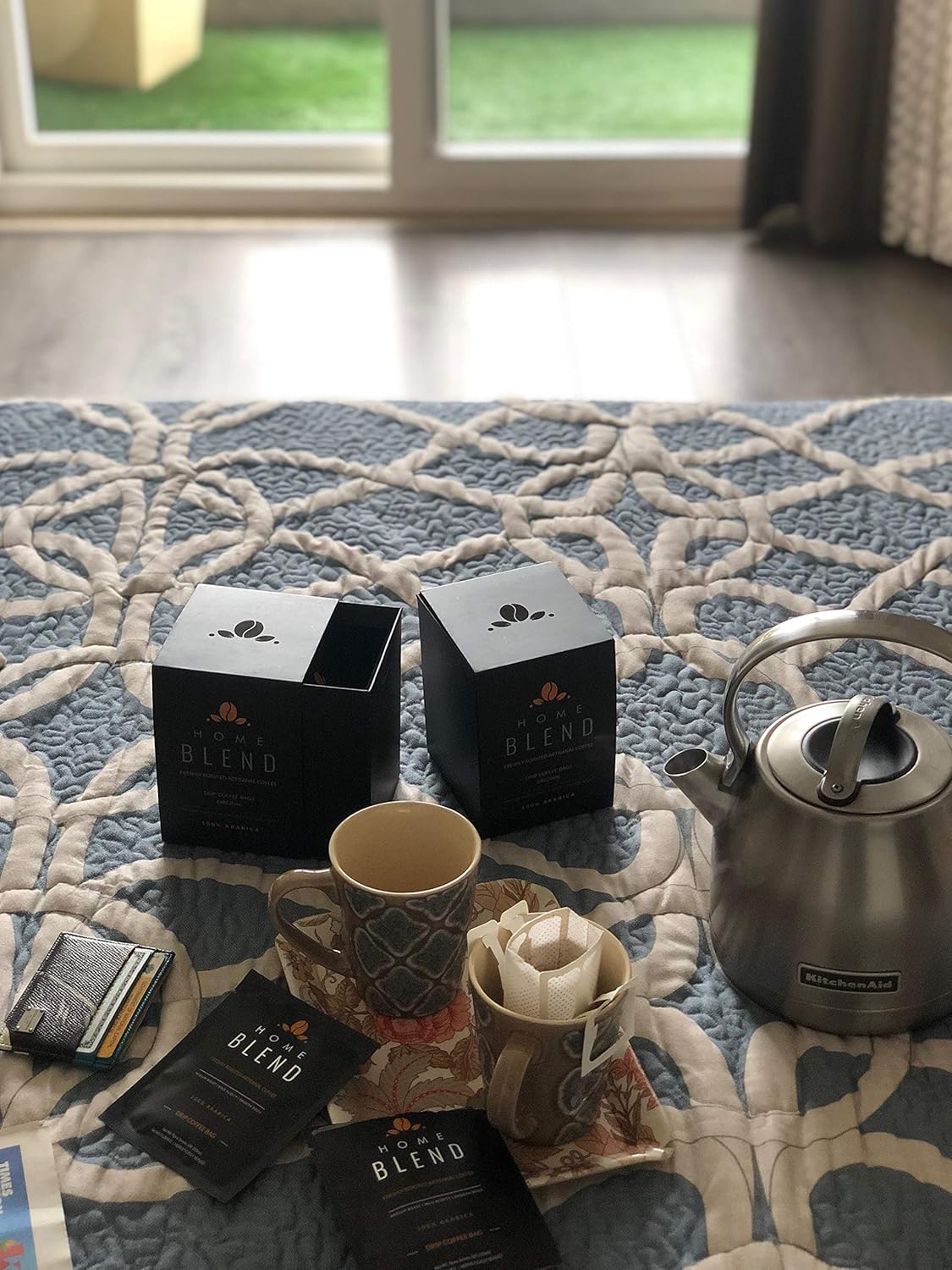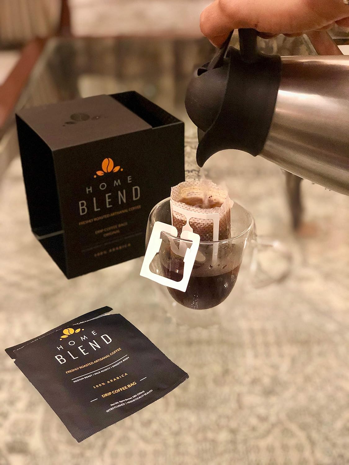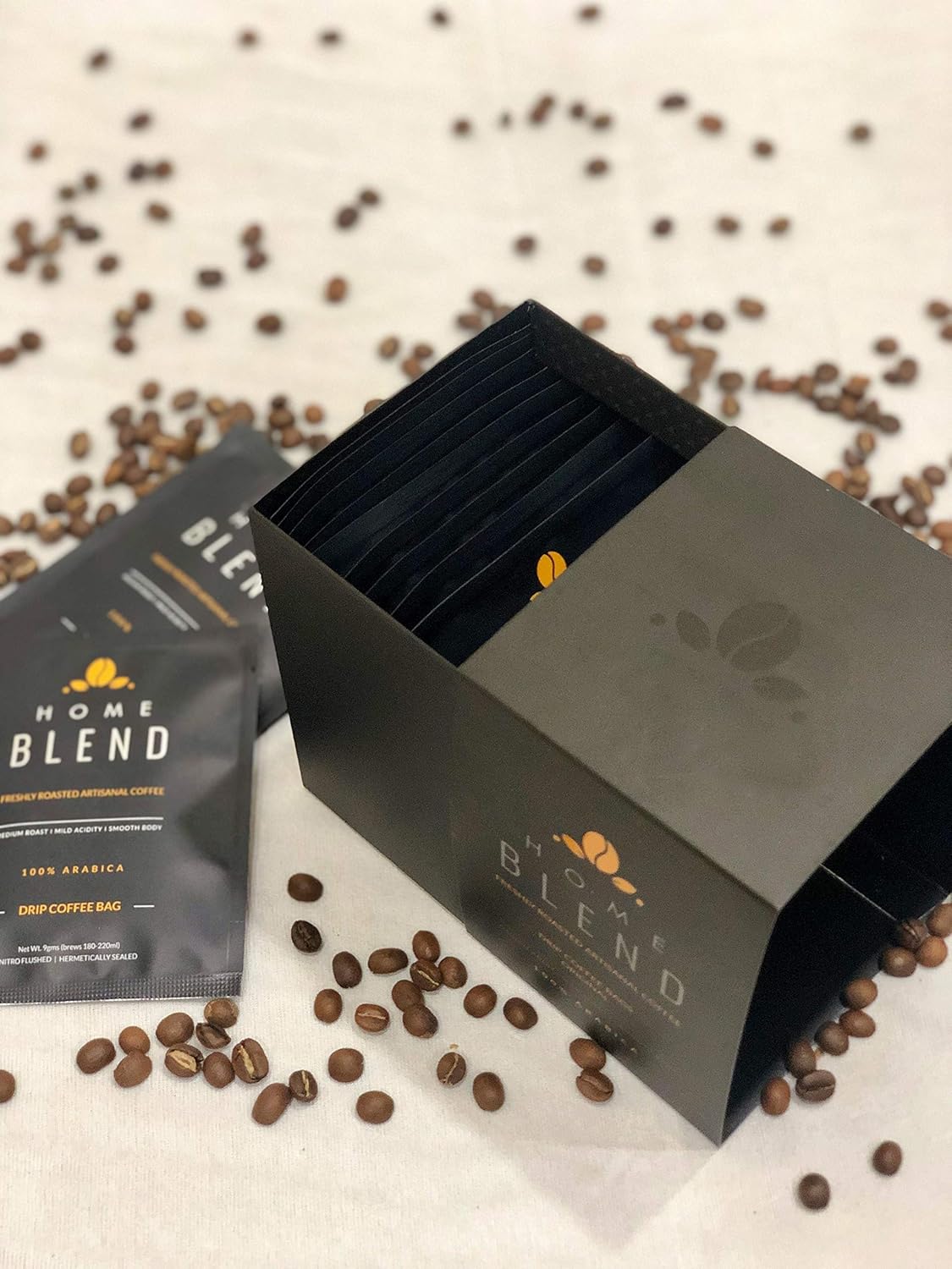 Drip Coffee By Home Blend: Consume Freshly Roasted & Grounded Coffee Brewed With Our Drip Coffee Bags. Freshly Roasted Coffee Grounds In A Bag Just Like A Tea Bag - No Additional Equipment Required. Now Enjoy The Most Exquisite Coffee - 100% Arabica - 'AAA' Grade, Anywhere. Just Place Over Any Cup And Add Hot Water For A Fresh Brew. Our Drip Bags Are The Future Of Ready-To-Go Freshly Roasted Premium Coffee. Each Box Contains 10 Drip Bags