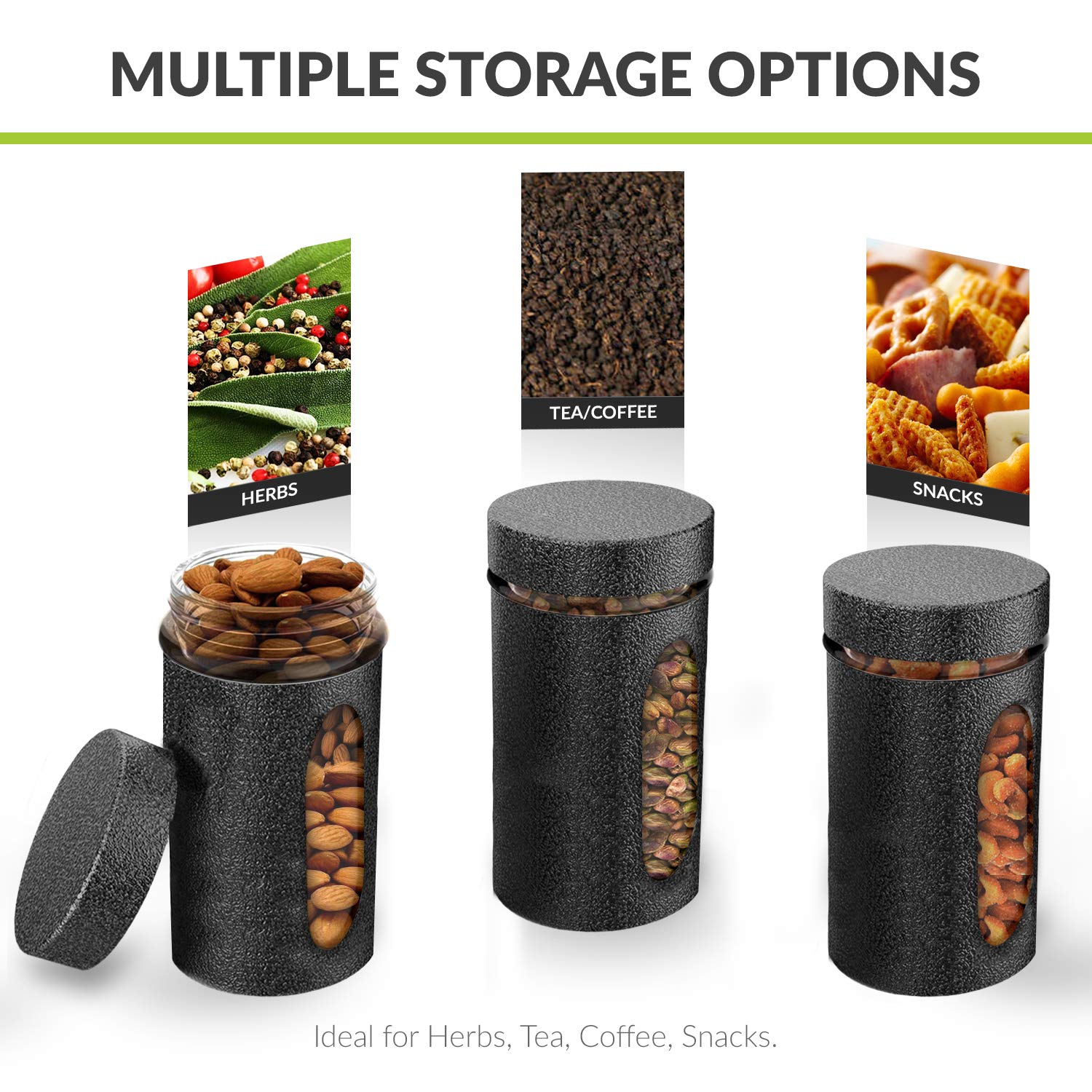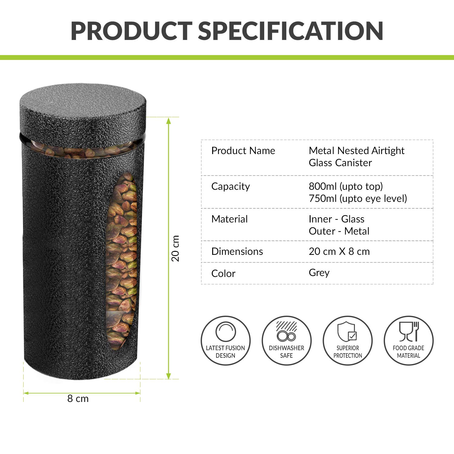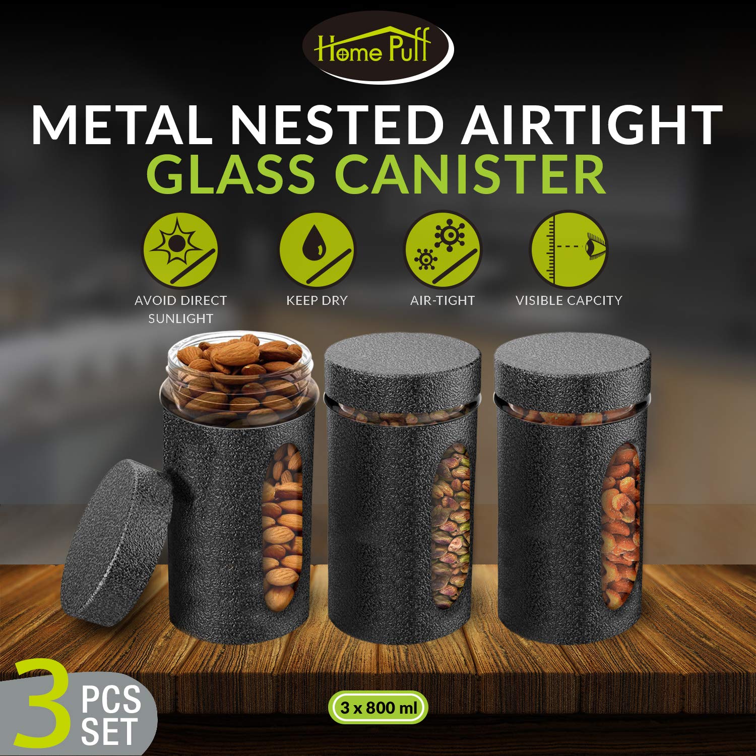 Home Puff Premium Airtight Metal Glass Canisters Set, 800ML, 3-Piece (Silver)