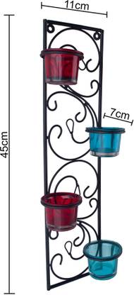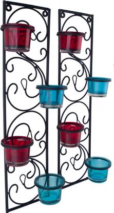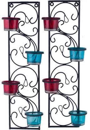 Homesake Wall Hanging Twisted Petals Tea Light Candle Diya Holders, Set of 2, Turquoise and Red Candle older Iron, Glass 8 - Cup Tealight Holder Set (Multicolor, Pack of 2)