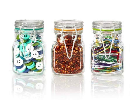 The jars have assorted colored gaskets which may be used for easy identification and add style.The jars are crafted from durable glass which does not stain, is easy to clean and allows you to easily view the contents