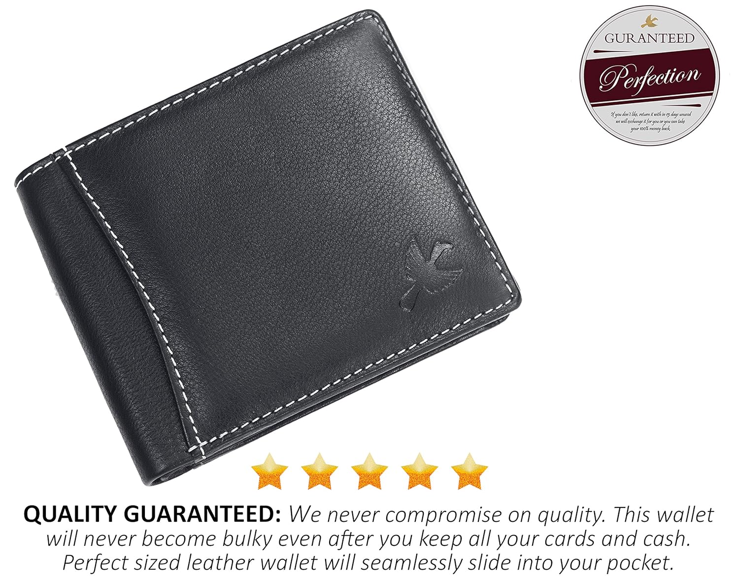 IT'S NOT BULKY: This wallet will never become bulky even after you keep all your ATM cards, credit cards and cash. This perfect sized leather wallet will seamlessly slide into your pocket.