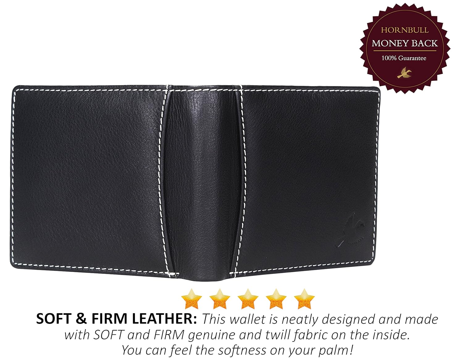 SOFT & TOP GRAIN LEATHER: This Men's wallet is neatly designed and made with SOFT and FIRM genuine leather and twill fabric on the inside. You will feel the softness on your hand and it will never be a hard leather product.