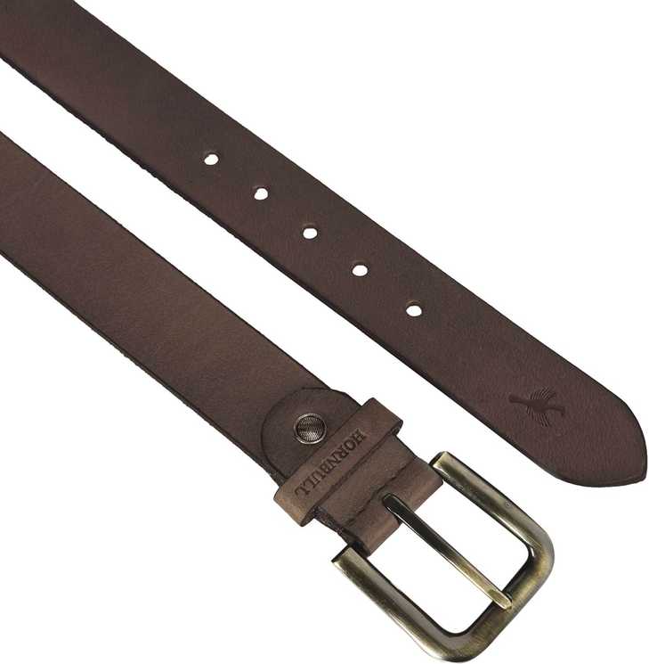 Exuding combination of class and elegance, this Brown belt for men by Hornbull is worth investing in Made of Pure Leather, this 34 mm belt is long durable. Black colour with subtle self design & metal point buckle adds a dash of style to your attire. Apt for all formal as well as casual occasions, it can be paired with all the colour combinations in your wardrobe.
