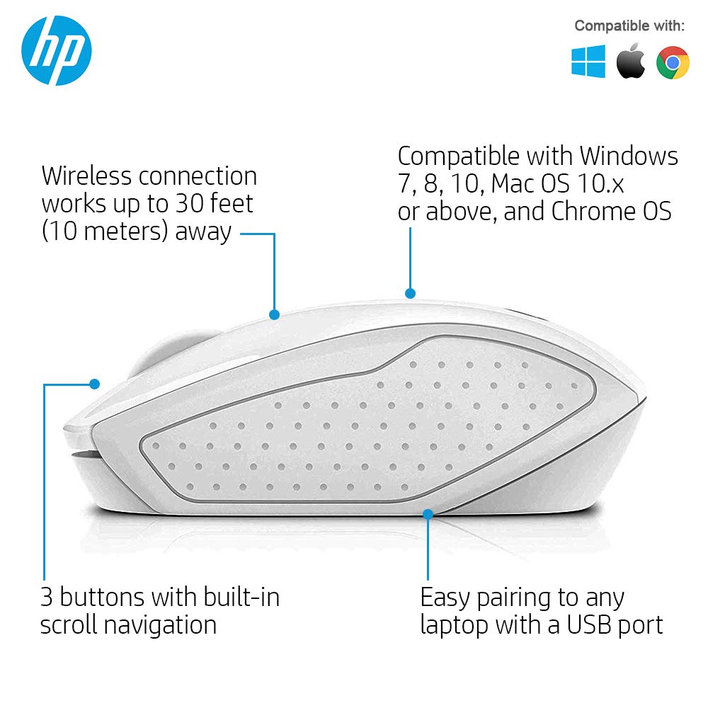 Lose the wire. Package contains HP Wireless Mouse 202; 2.4 GHz wireless dongle; 2 AAA batteries; Quick Start poster; Product notices; Warranty card. |