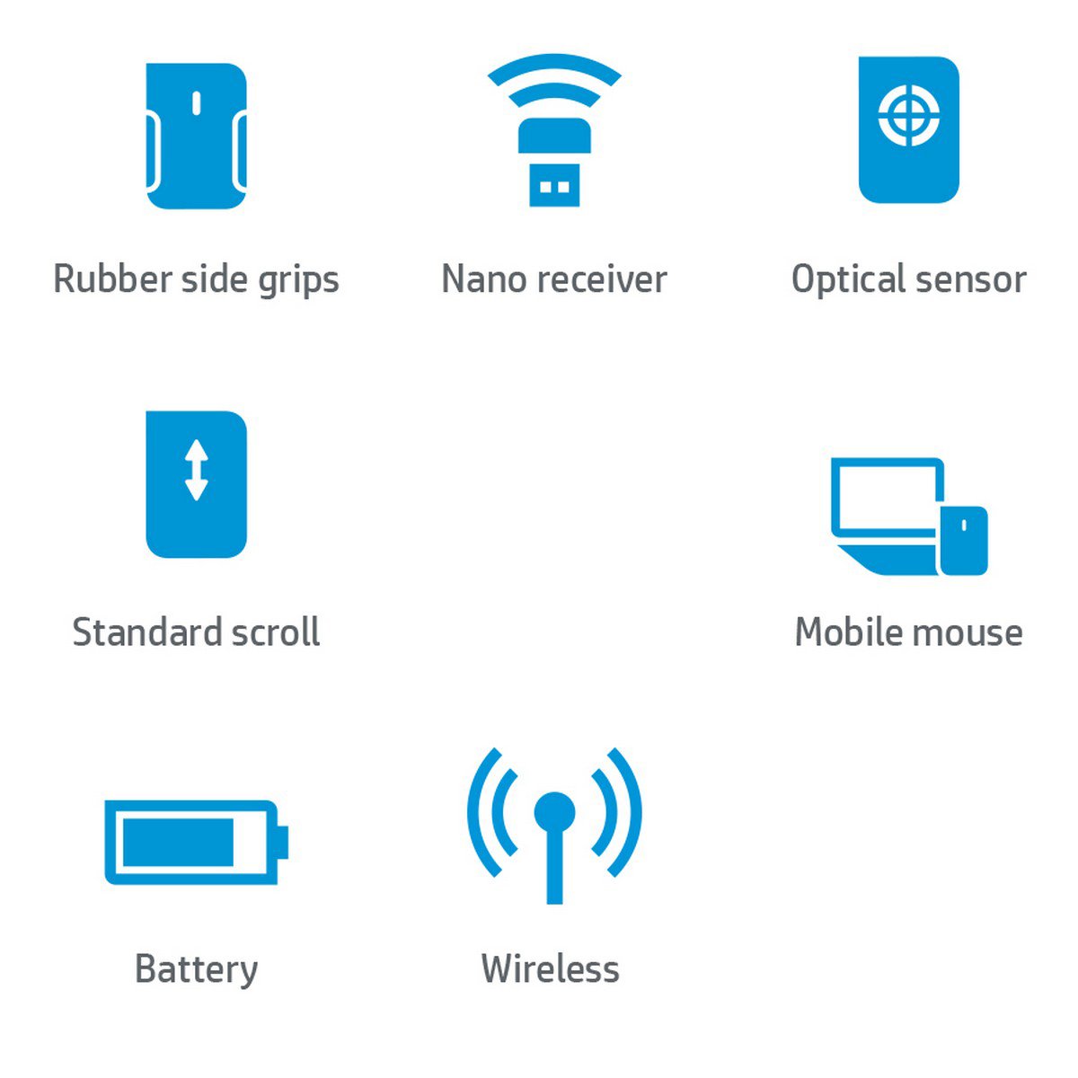 Built with strict standards and guidelines, the HP Mouse X3000 effortlessly blends sleek, modern design with life-enhancing, advanced features. 70 years experience. Strict quality control. 1 of the world's leading notebook manufacturers. HP delivers cutting-edge products built with some of the industry's toughest standards to enhance the way you connect and communicate. The sleek and modern HP Mouse X3000 adds an instant touch of trend-setting style to any work space. Glossy black and metallic gray shine with sophistication. Plus, its curvy silhouette gives it a seductive shape. The HP Wireless Mouse X3000 features the latest technology you crave. 2.4GHz wireless connection sets you free. Battery life lasts 12 months.(1) Scroll wheel flies through the web and documents. Optical sensor works on most surfaces. |