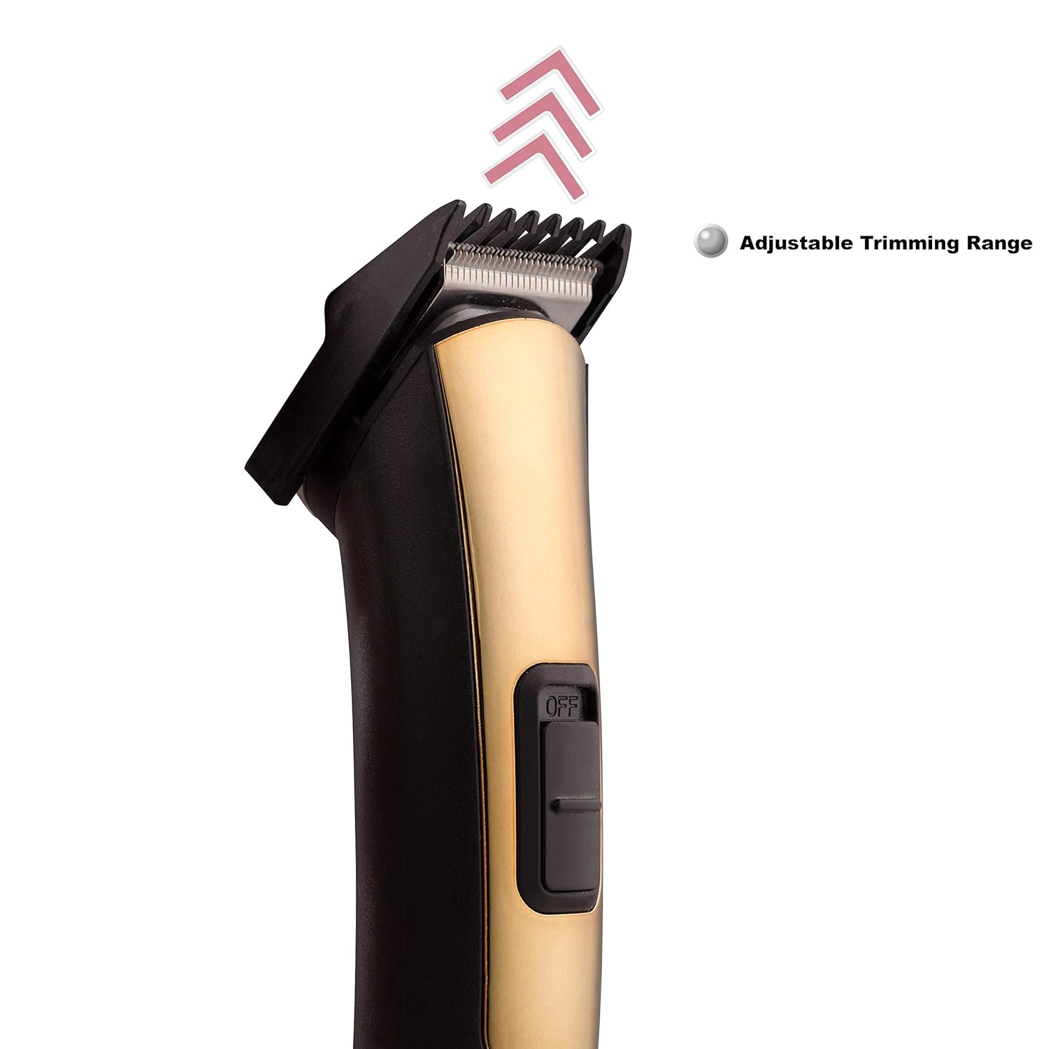 This cordless trimmer from HTC is a stunning piece. Grab this trimmer and enjoy hassle-free grooming experience at home. Easy to Use this trimmer ensures ease of use, thanks to its ergonomic design. So look dashing and trim your beard and your underarms and be party-ready always. A Must-Have Grooming Kit This trimmer is not just a device used for trimming. It comes with a number of other attachments which will ensure that you look groomed. Its stainless steel blade and free floating head will give you a complete and clean trim without cutting or damaging your skin. Rechargeable whether you are at home or holidaying, with this trimmer in handy, you don???t have to worry about looking shabby as this trimmer is rechargeable and can be carried along with you wherever you. |