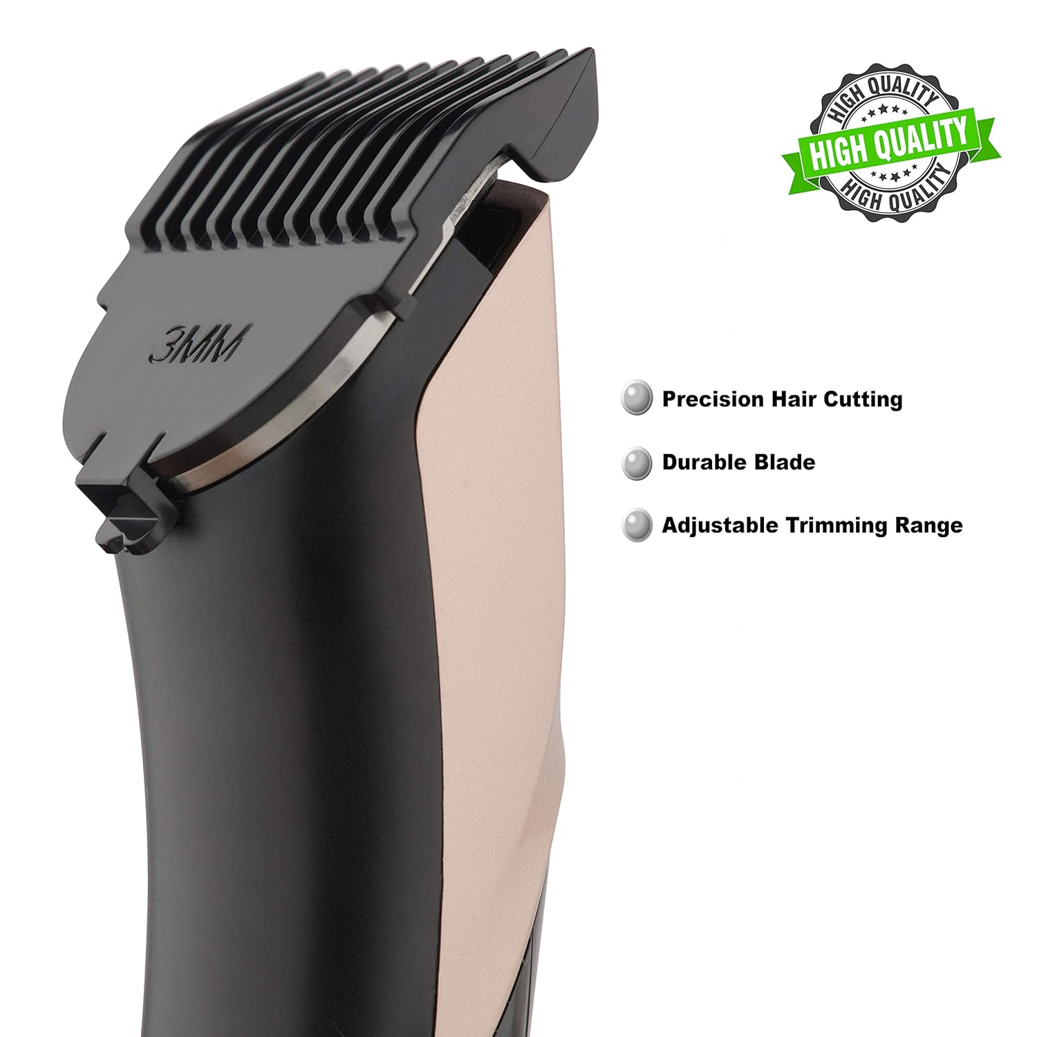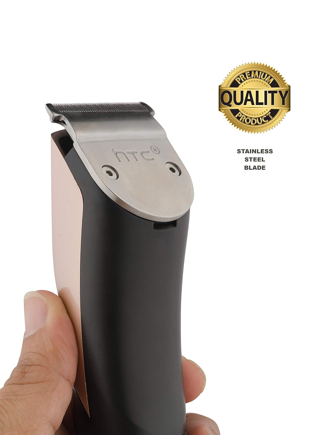 This cordless trimmer from HTC is a stunning piece. Grab this trimmer and enjoy hassle-free grooming experience at home. Easy to Use this trimmer ensures ease of use, thanks to its ergonomic design. So look dashing and trim your beard and your underarms and be party-ready always. A Must-Have Grooming Kit This trimmer is not just a device used for trimming. It comes with a number of other attachments which will ensure that you look groomed. Its stainless steel blade and free floating head will give you a complete and clean trim without cutting or damaging your skin. Rechargeable whether you are at home or holidaying, with this trimmer in handy, you don???t have to worry about looking shabby as this trimmer is rechargeable and can be carried along with you wherever you. |