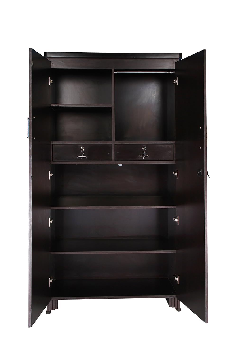 Double Door Wardrobe with six spacious shelves, two drawers and one mirror