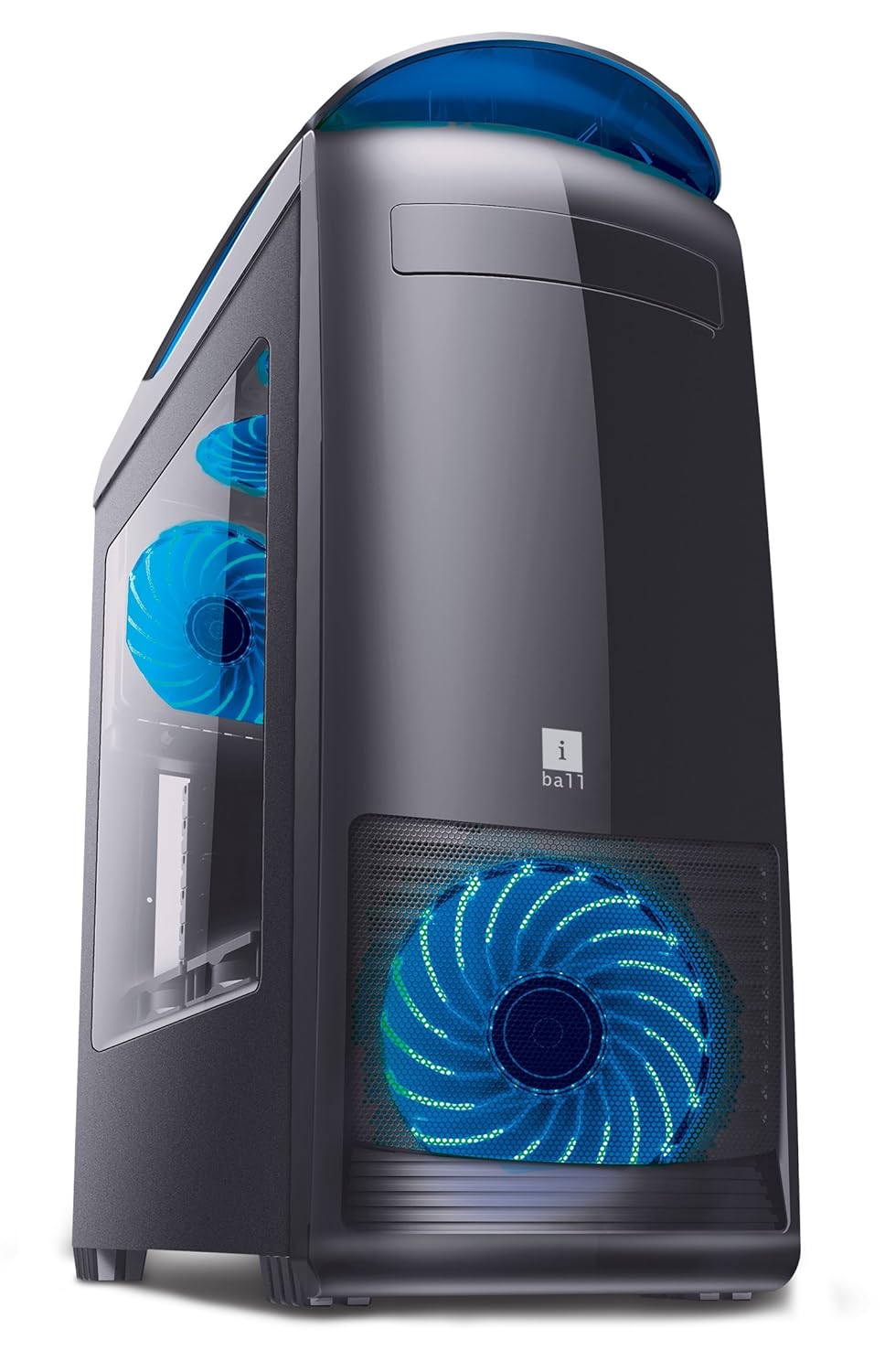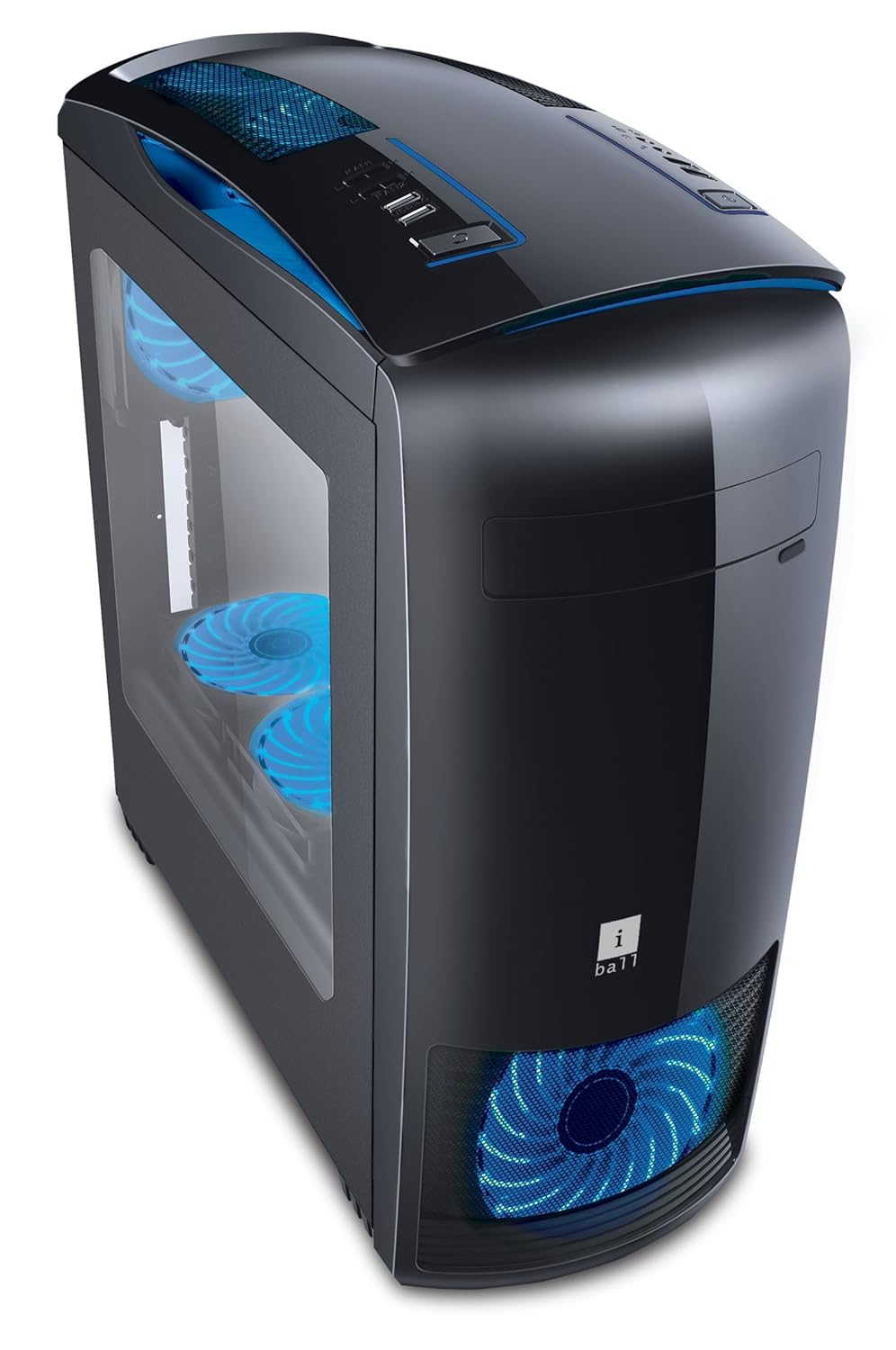 iBall Black Stallion Fully Loaded Gaming case designed for high performance, has provision of total 6 cooling fans, with room for top, front, bottom and rear-mounting options. Color - Steel Black Body Motherboard Form Factor - ATX / Micro ATX 3.5 Inch Bays - 2 5.25 Inch Bays - 1 Total Fan Space - Top - 2 x 12 cm Bottom - 2 x 12 cm Rear - 1 x 12 cm Bundled Cooling Fans - Front - 1 x 12 cm (Blue LED Fan) Top - 2 x 12 cm (Blue LED Fan) Rear - 1 x 12 cm (Standard Fan) Net Weight - 4.7 Kg Expansion Slots - 7 Dimensions - 50.5cm (H) x 20.5cm (W) x 48.3cm (D) (Only Chassis)-44.6cm (H) x 18.4cm (W) x 42cm (D) |