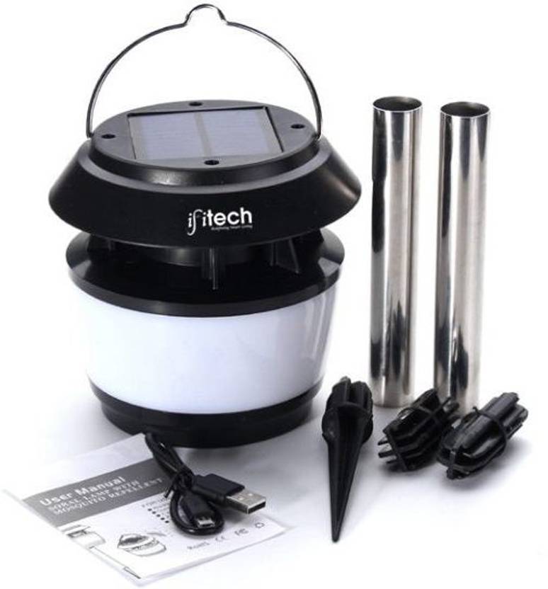 IFITech solutions for smart, secure and green life in & around homes. IFITech White LED Solar Garden Light with mosquito repeller for outdoor as well as INDOOR location, as a weatherproof and waterproof light, it can be installed without fear of environmental damage. It has Super-bright LEDs generating 50 lumens brightness of the light. Built-in rechargeable Li-ion battery(800mAh). 2 charging method: The internal rechargeable battery will be charged by sunlight during daytime & also can be charged with micro USB cable through electricity. 3 Incredible Functions: solar garden light, table light and mosquito repellent. Intelligent Energy-saving: Auto on at dusk and switches off at sunrise (once the ON button is pressed). Easy Installation: Simply install at any outdoor location that needs a light without hassles of wires & switches. Working Time: Charges during the day and runs for over 12~16 hours (up to 2 nights depending on charge). Application Areas: Outdoors, Gardens, Aisle, Road, Driveway, Pathway, Parking Lot, Sidewalk, Campus, Rooftop gardens, Patios and it can be used as a Pendant light.