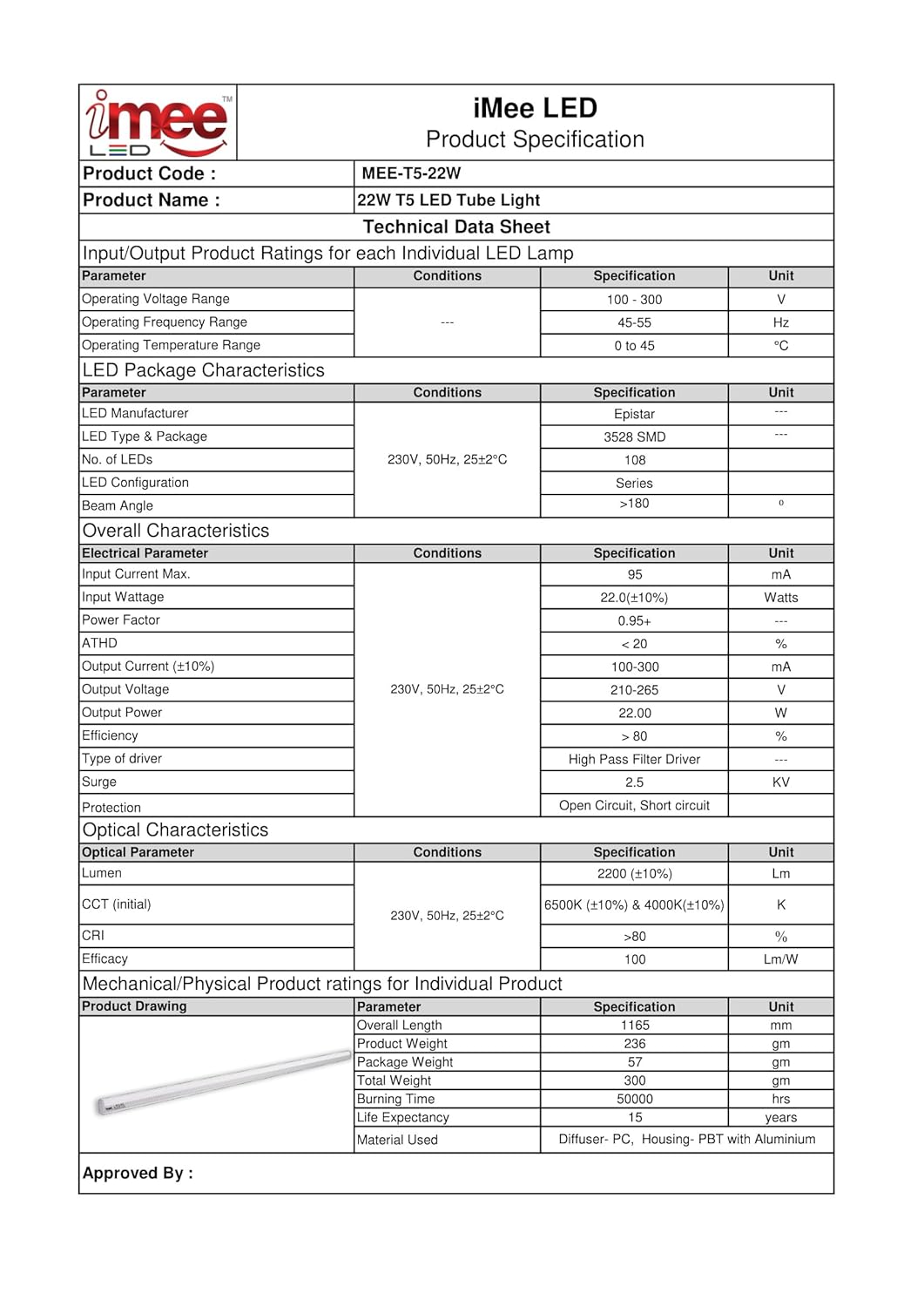 | Part Number | MEE-T5-22W-6500K-PACK OF 1 |
