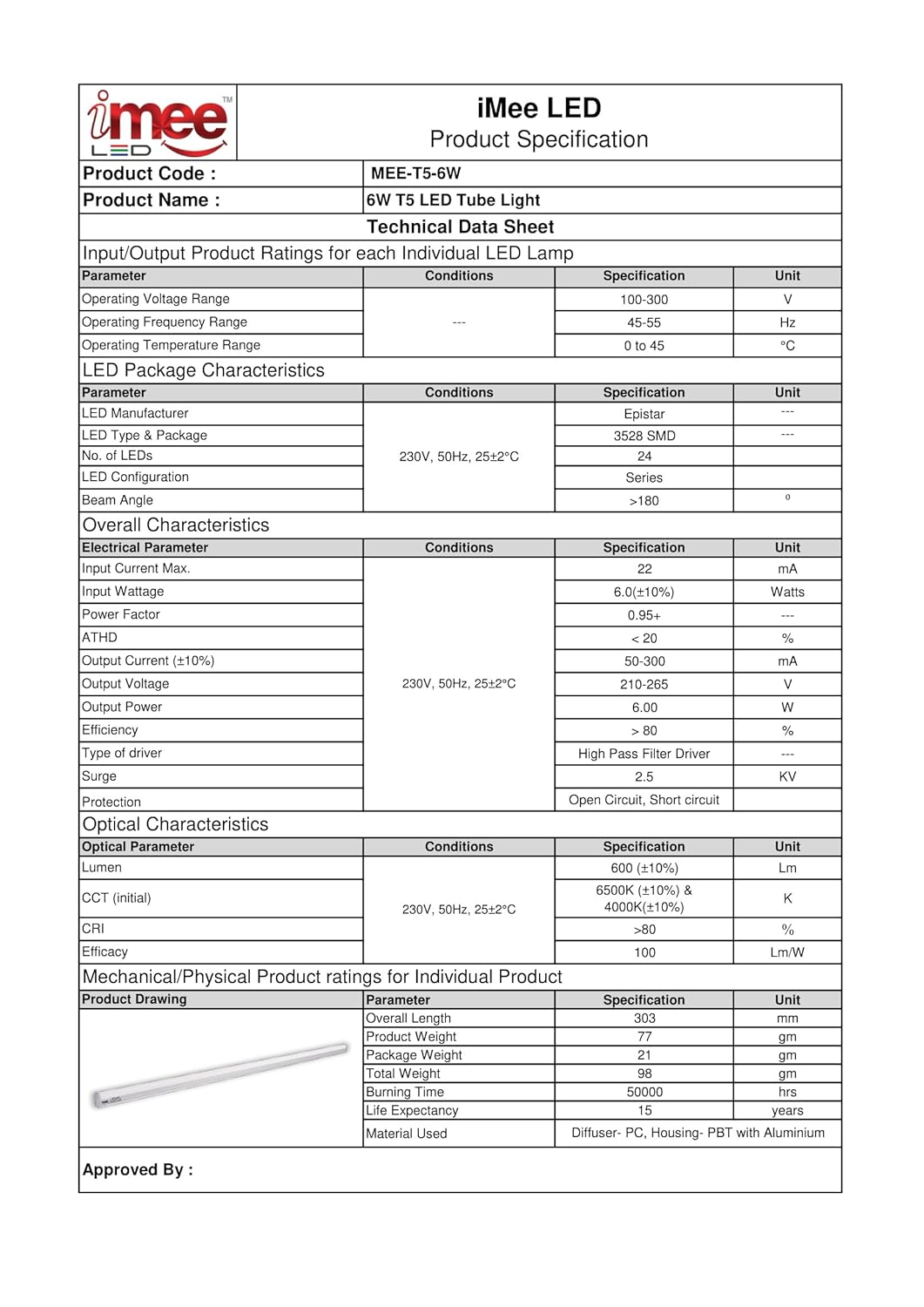 | Part Number | MEE-T5-6W-3000K-PO1 |
