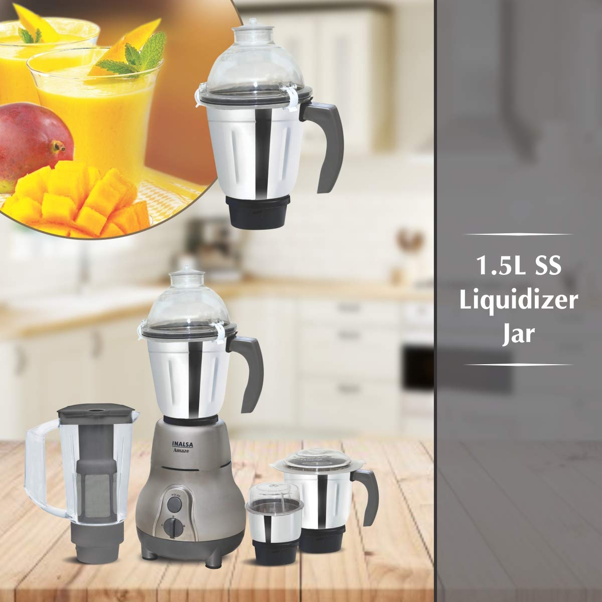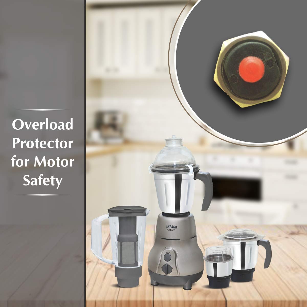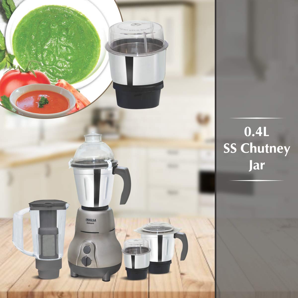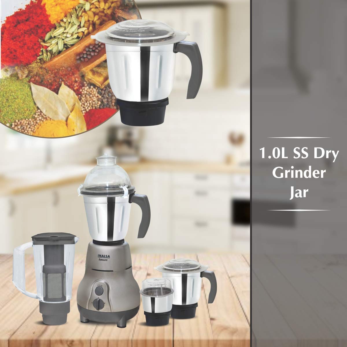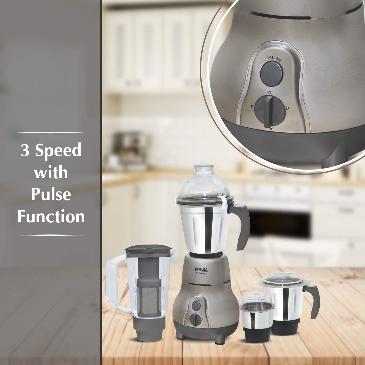 Inalsa Amaze 750-Watt Mixer Grinder with 4 Jars (Grey)