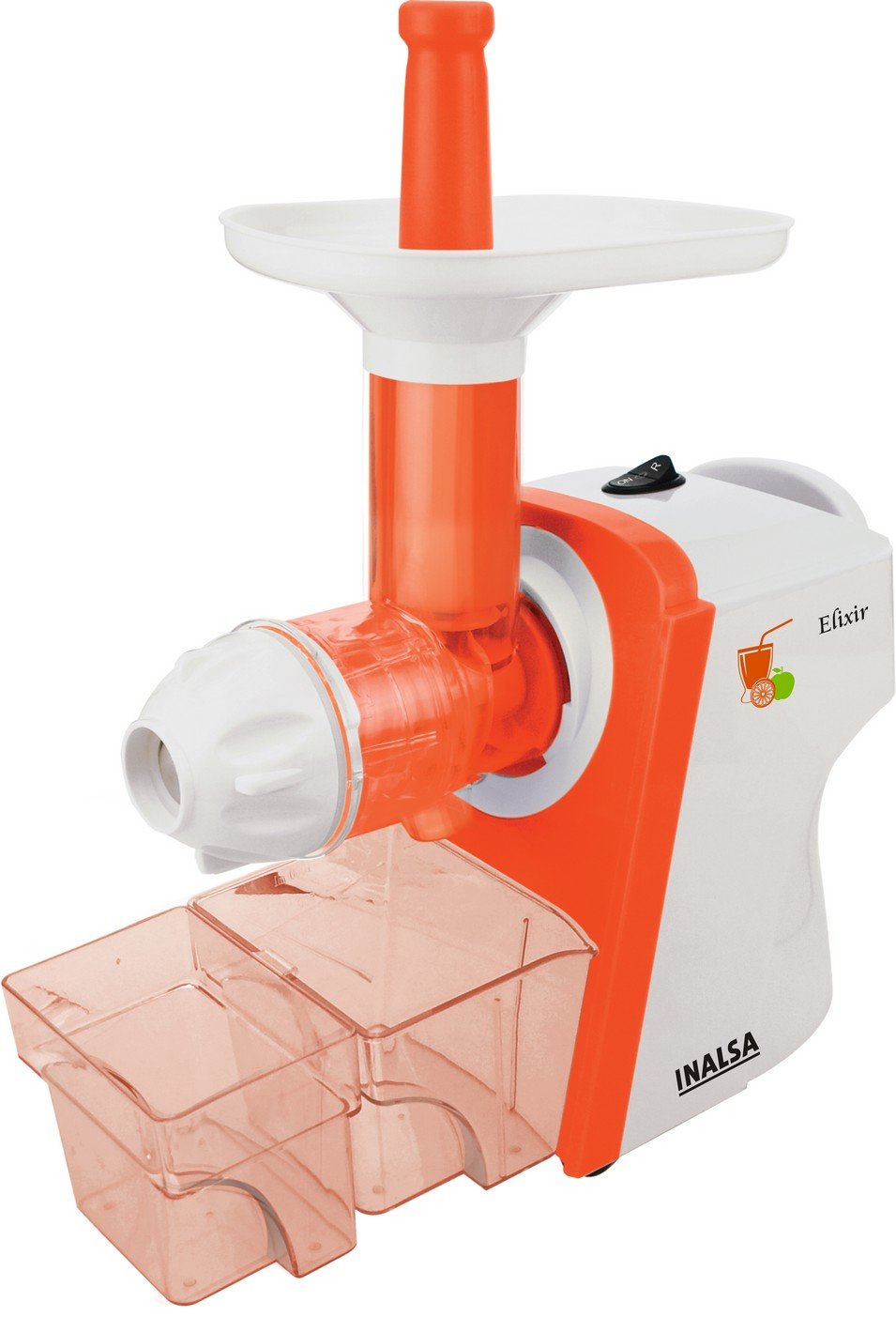Inalsa Elixir 200-Watt Slow Juicer (White and Orange)
