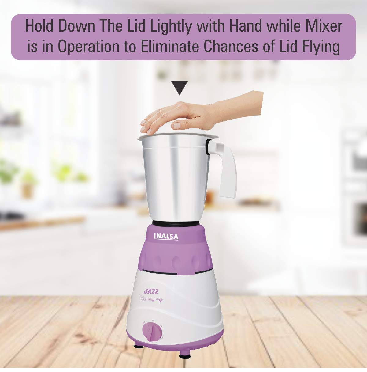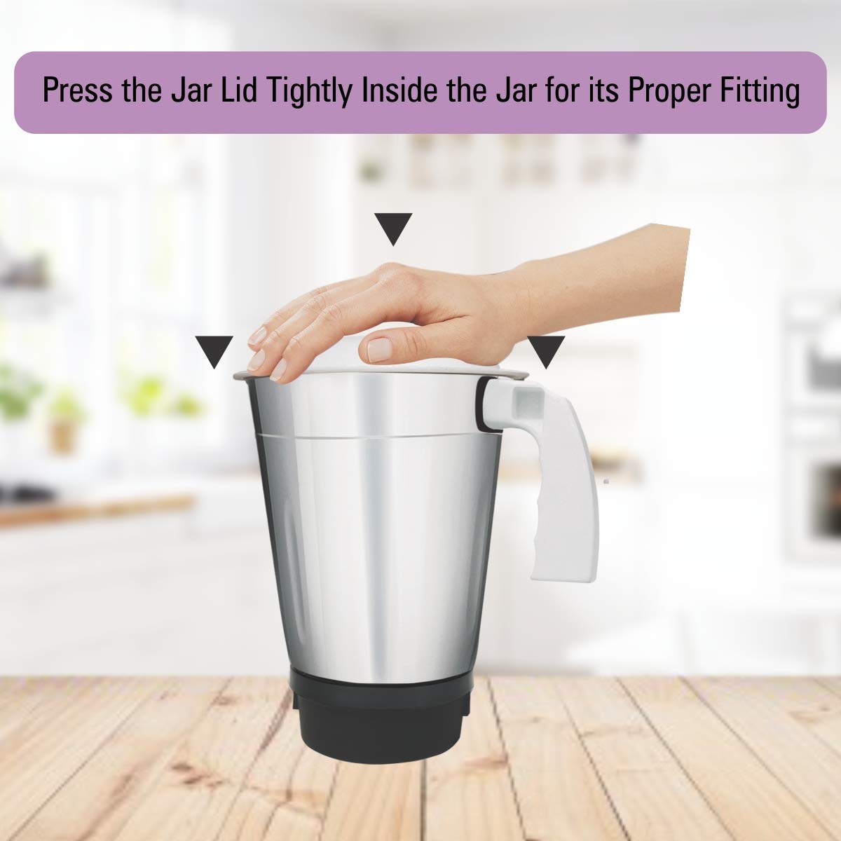 Press the Jar lids tightly inside the Jars for its Proper Fitting. Hold down the lids lightly with hand while Mixer is in Operation to eliminate chances of Lid flying