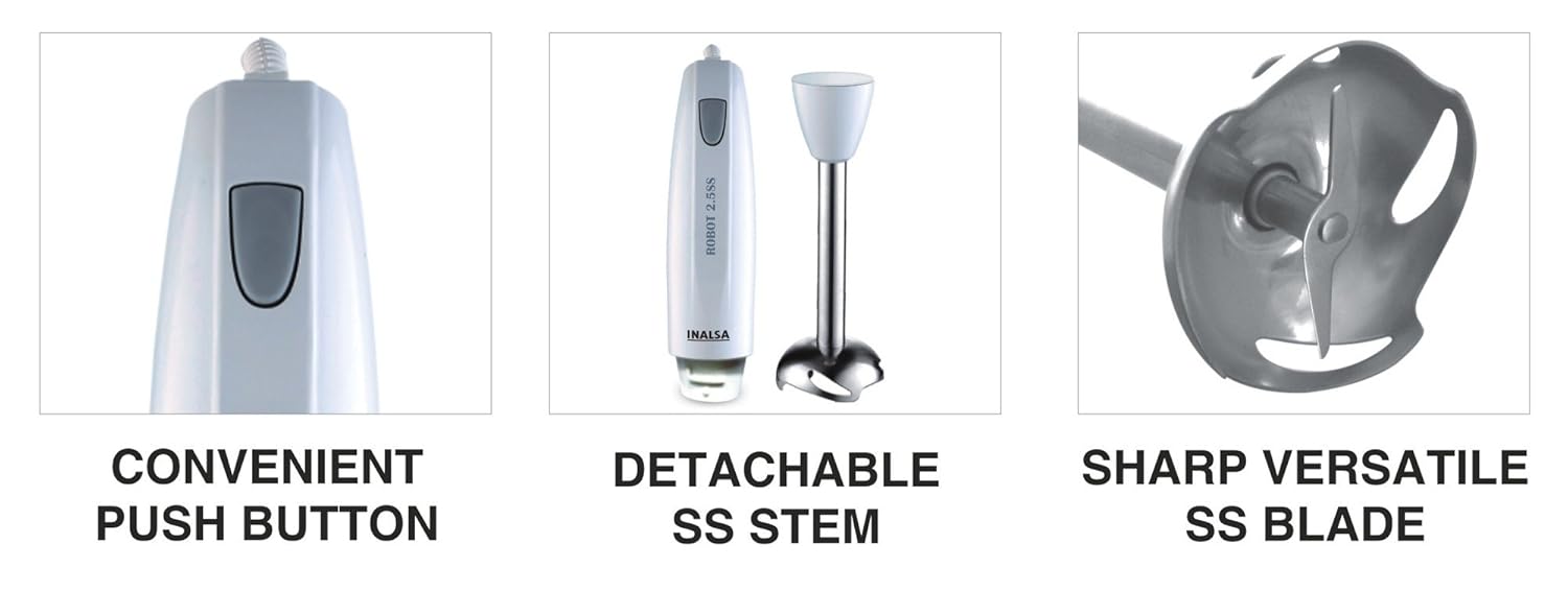 Inalsa Robot 2.5SS 200-Watt Hand Blender (White)
