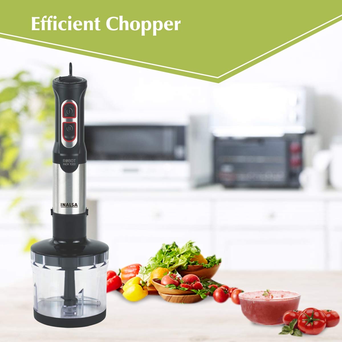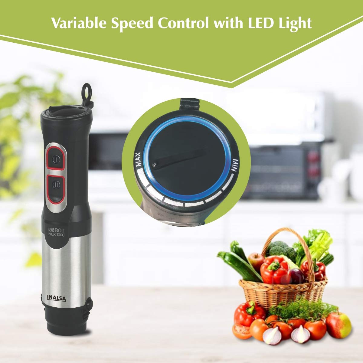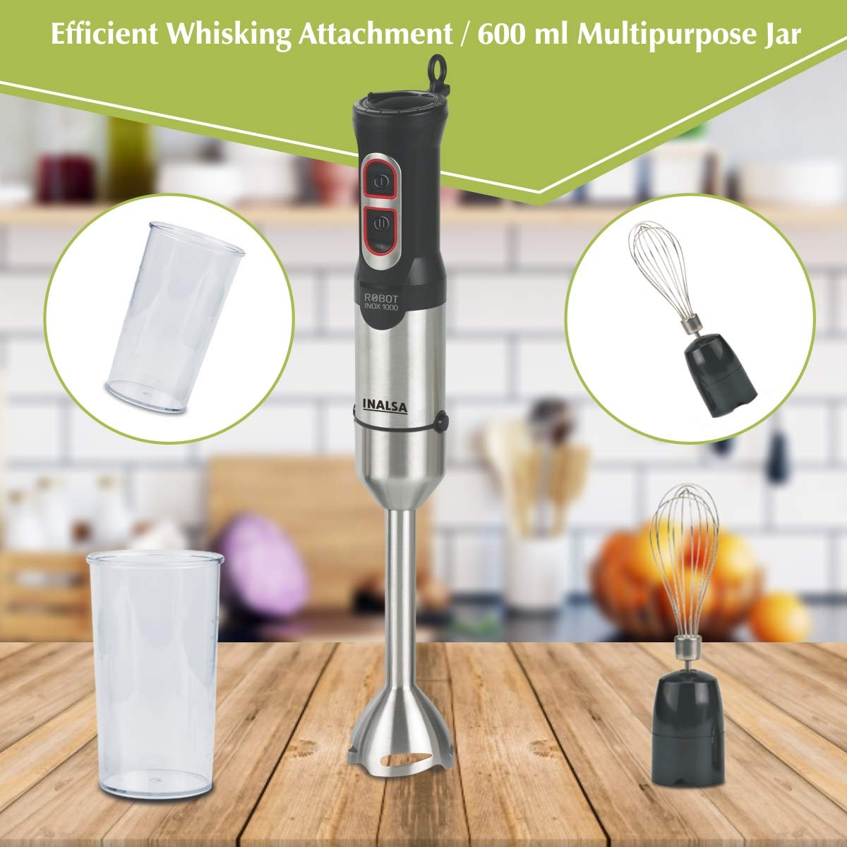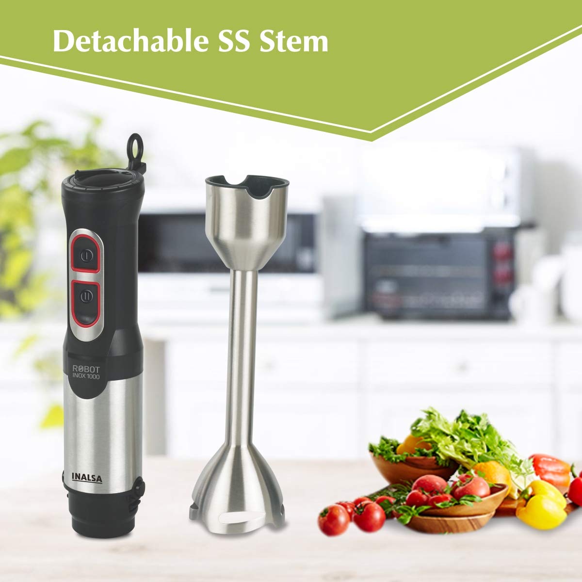 Inalsa Robot INOX 1000 800-Watt Hand Blender with Chopper DC Motor (Silver/Black)