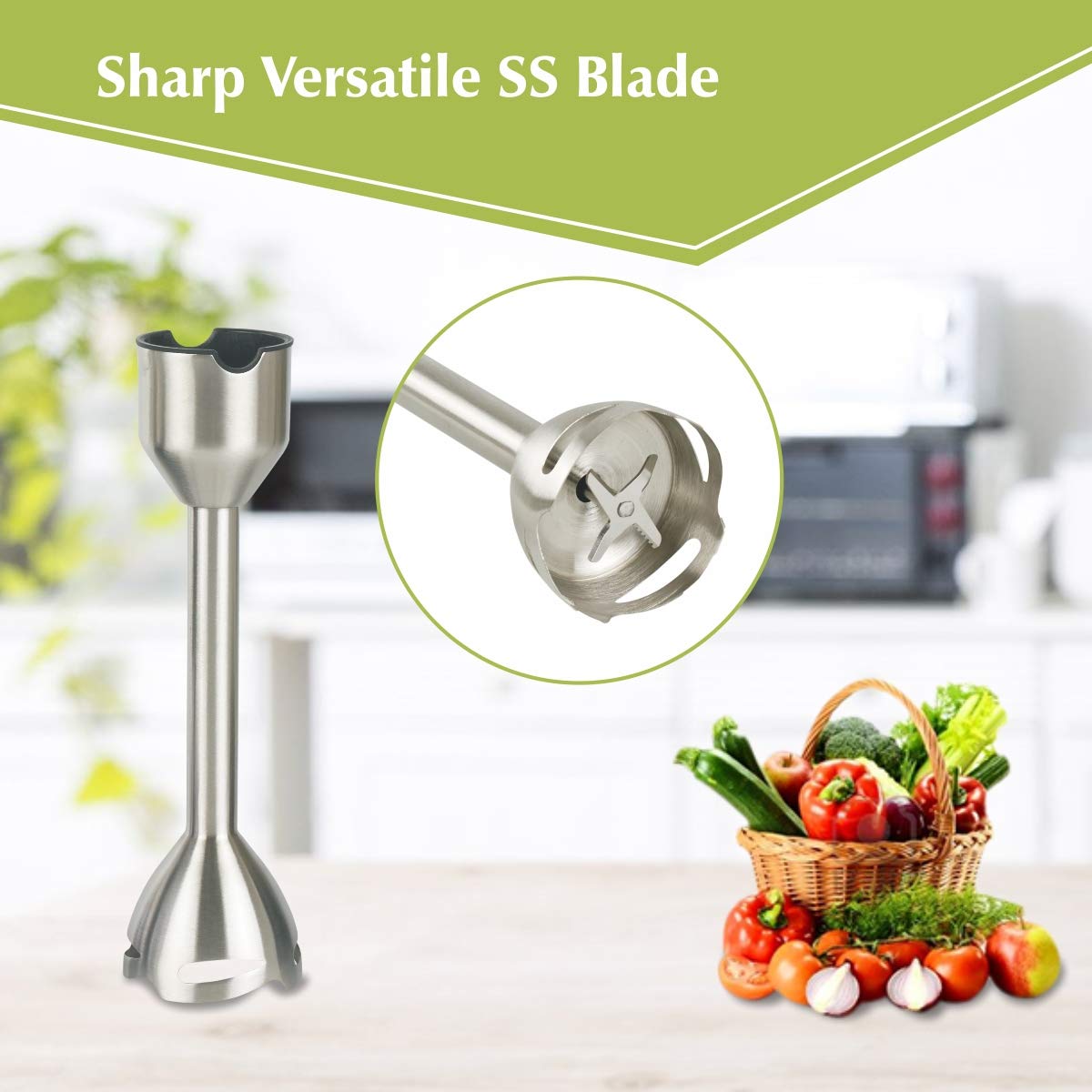 i) Motor type- 800 watts DC motor ii) whisking attachment and Chopper iii) 600 ml multipurpose jar