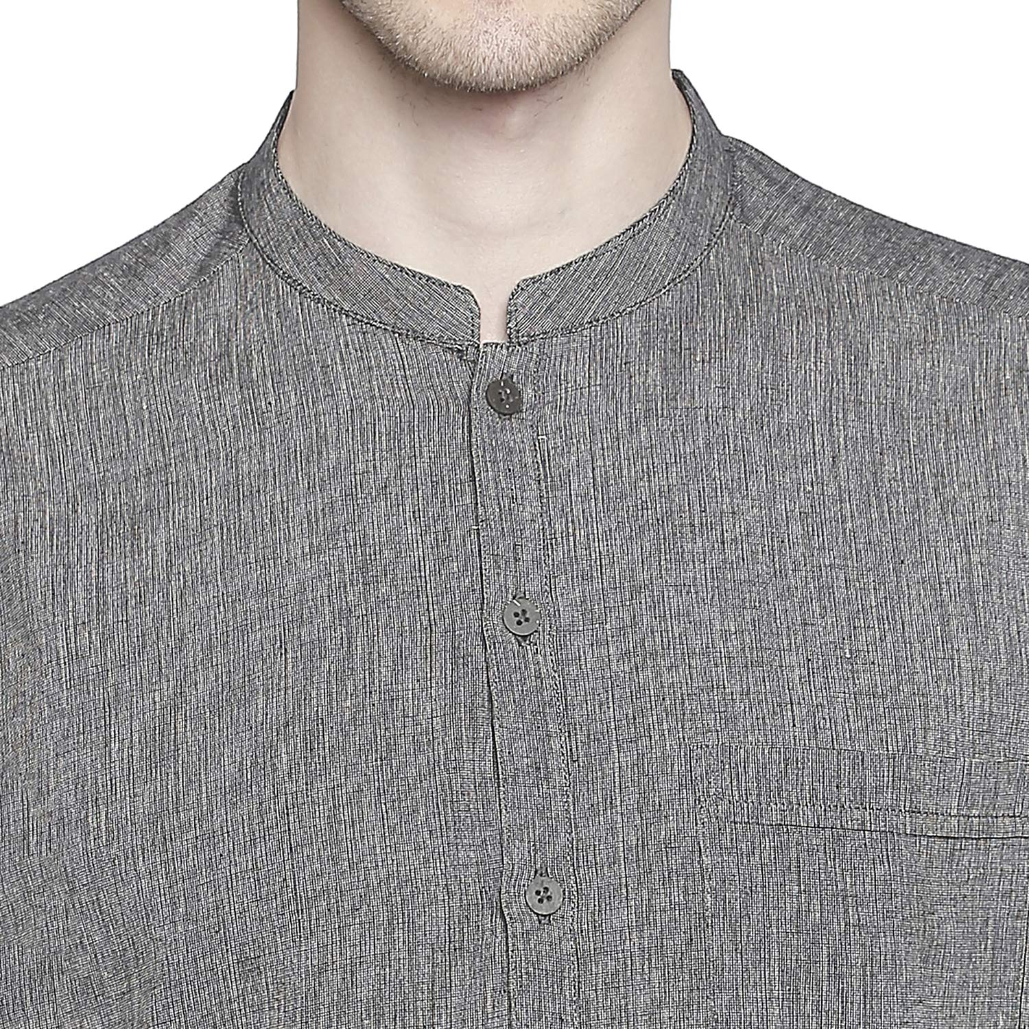 Charcoal coloured kurta for men Made out of cotton fabric featuring a solid pattern along with comfort fit.