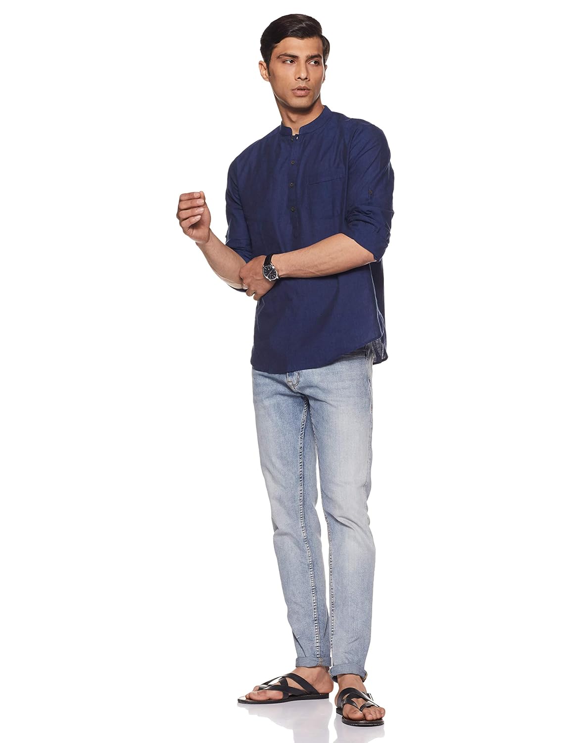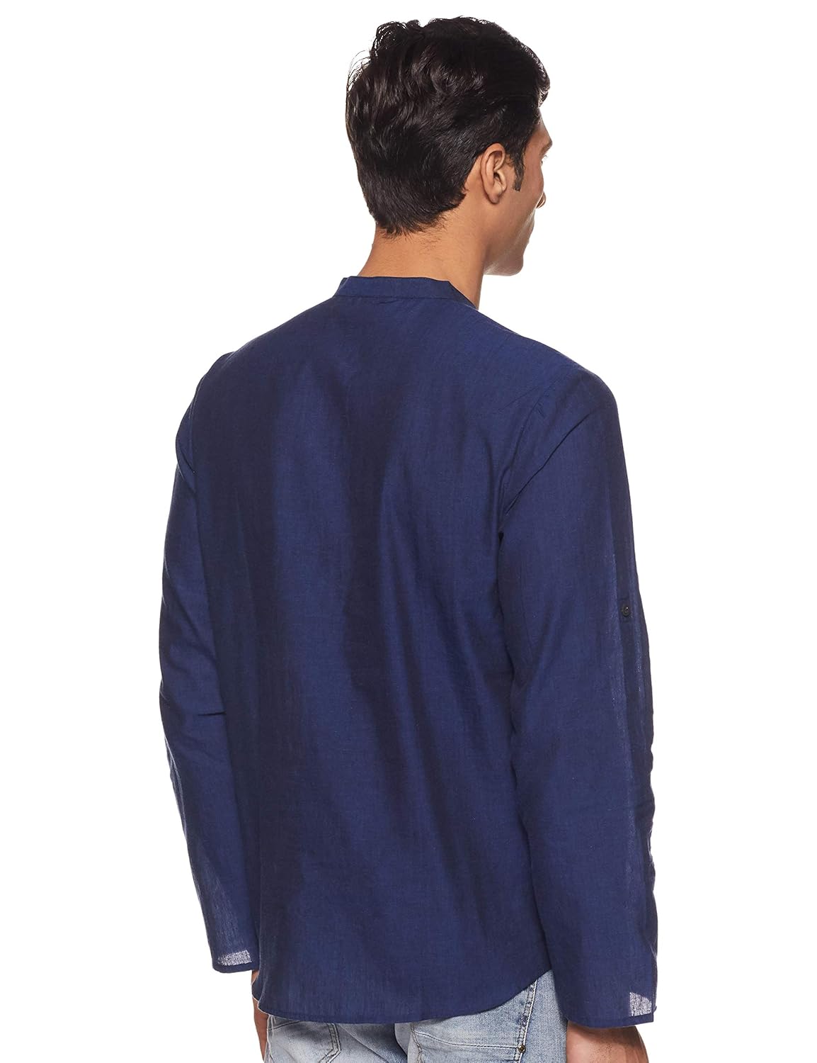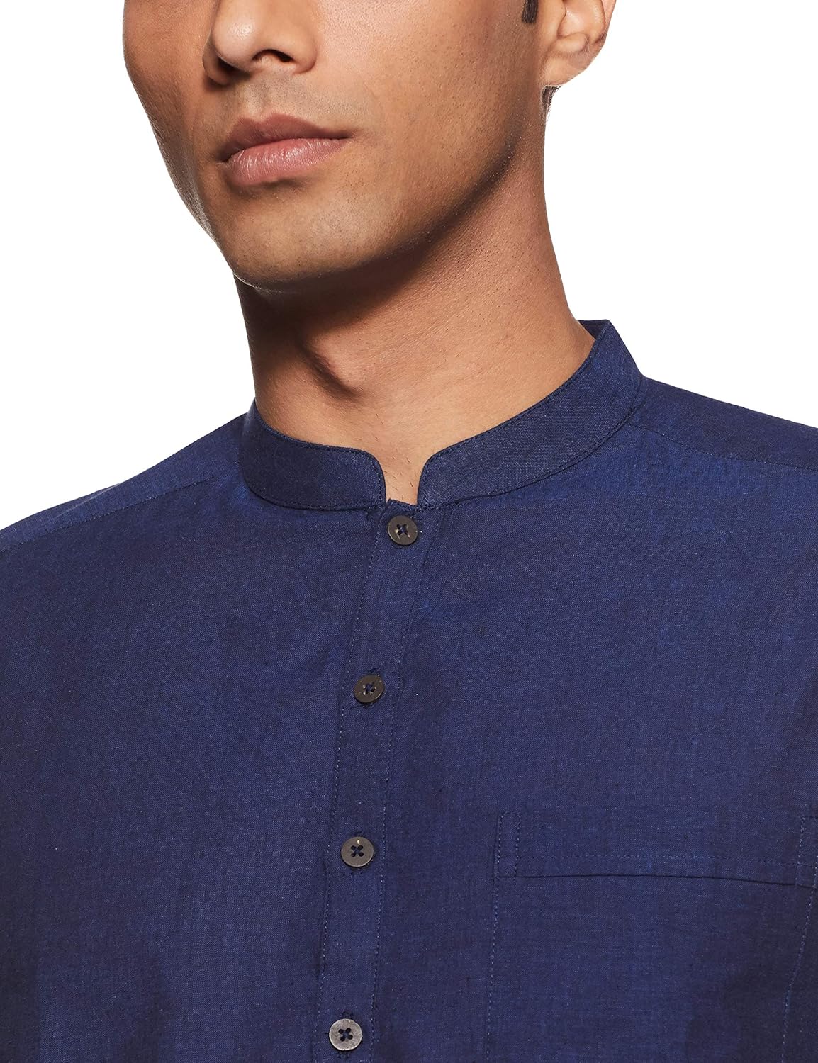 Indigo coloured kurta for men Made out of cotton fabric featuring a solid pattern along with comfort fit.