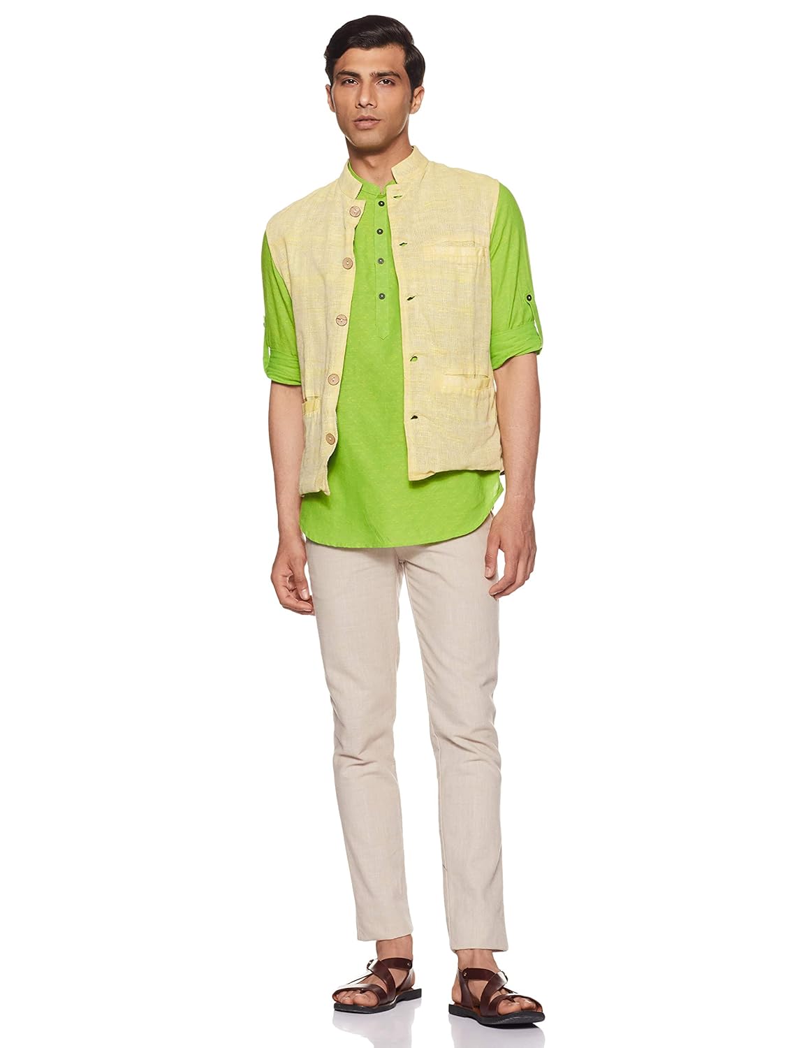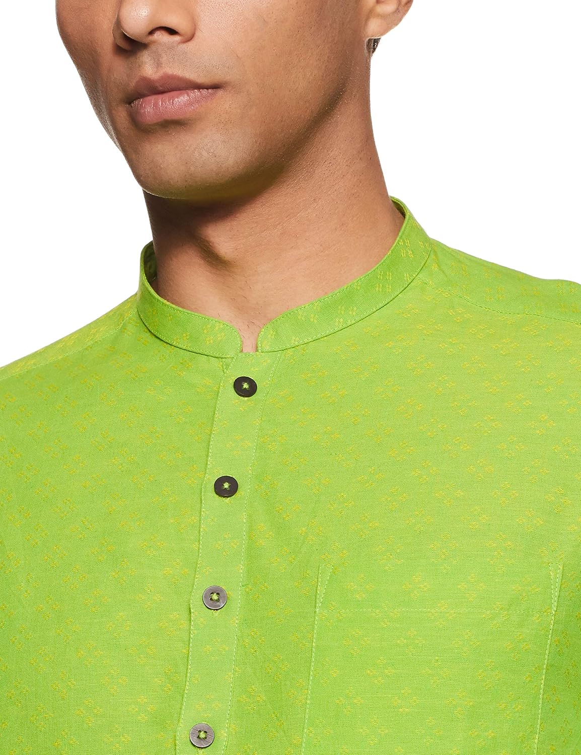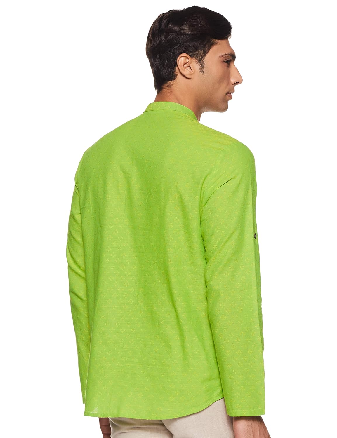 Lime Green coloured kurta for men Made out of cotton fabric featuring a self Design pattern along with comfort fit. |