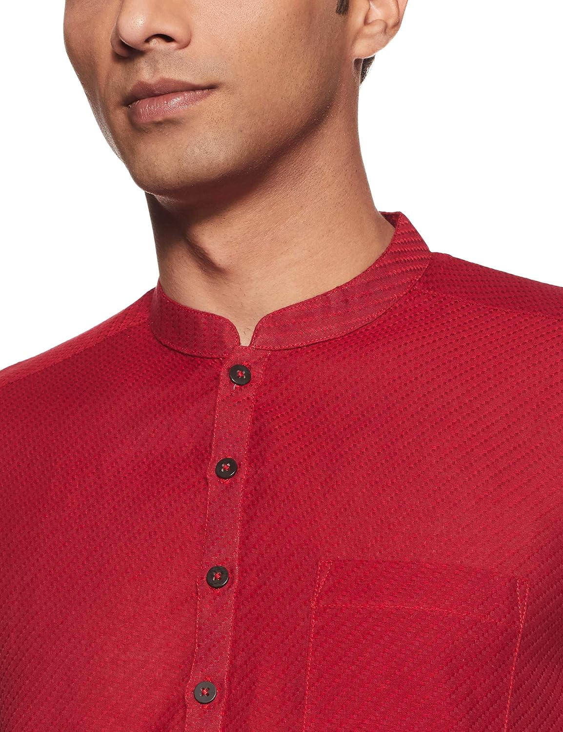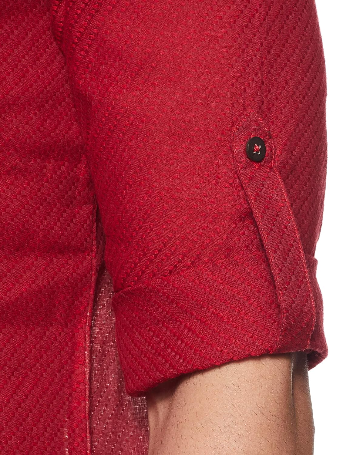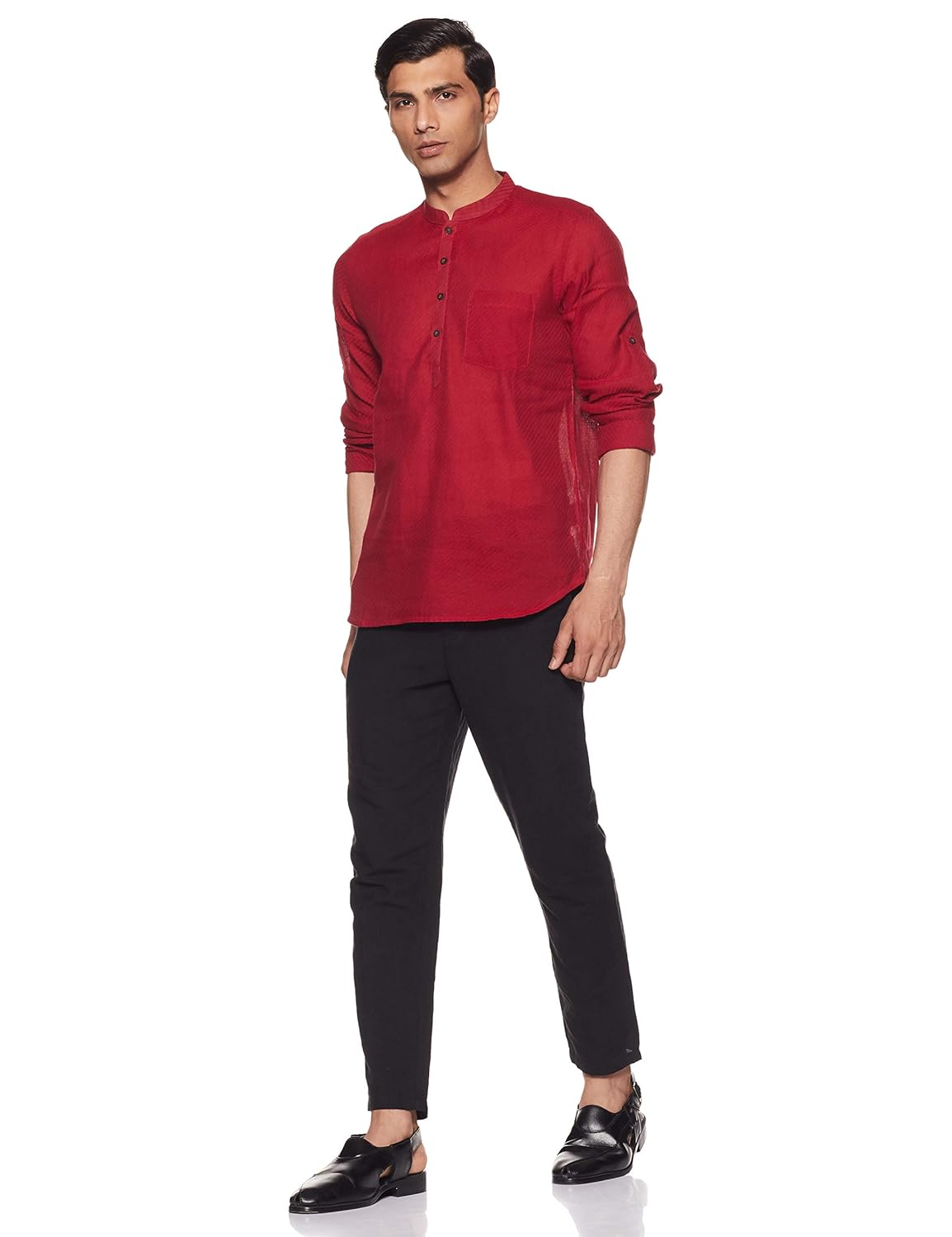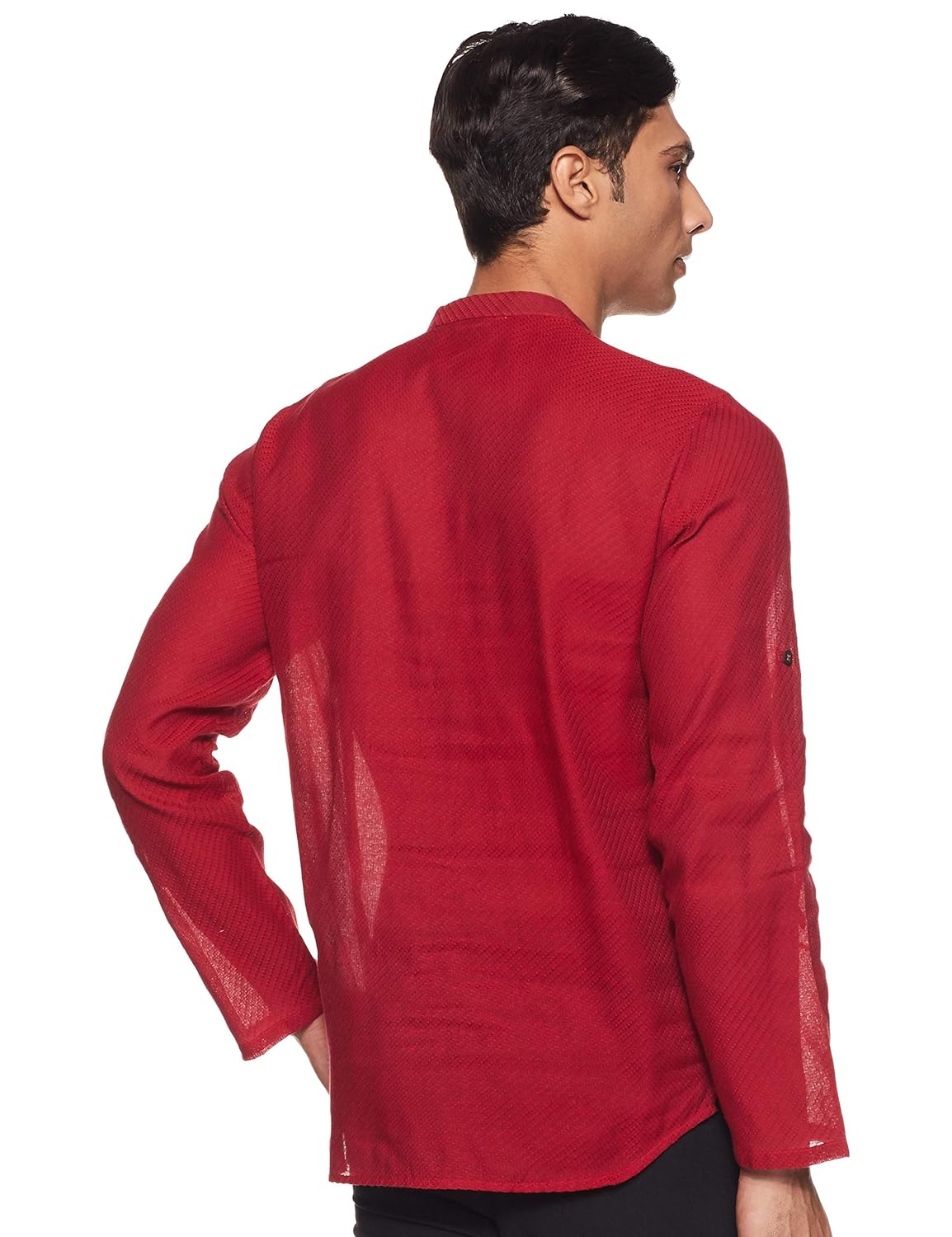 Maroon coloured kurta for men Made out of cotton fabric featuring a self Design pattern along with comfort fit.