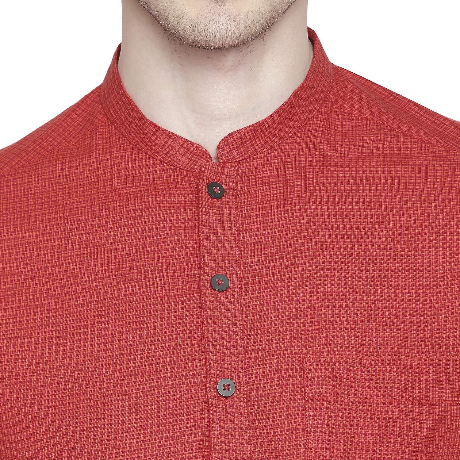 Red coloured kurta for men Made out of cotton fabric featuring a self Design pattern along with comfort fit.