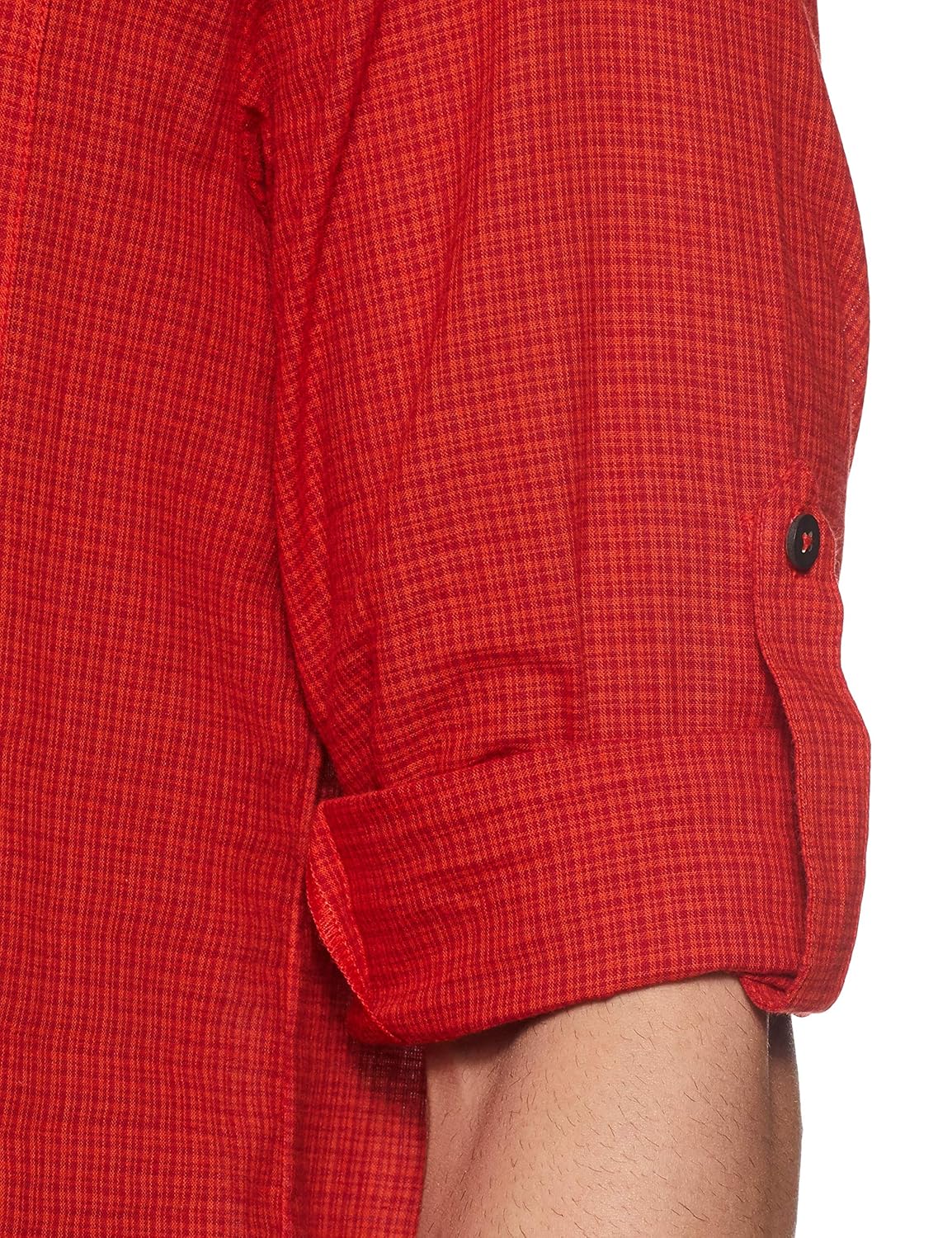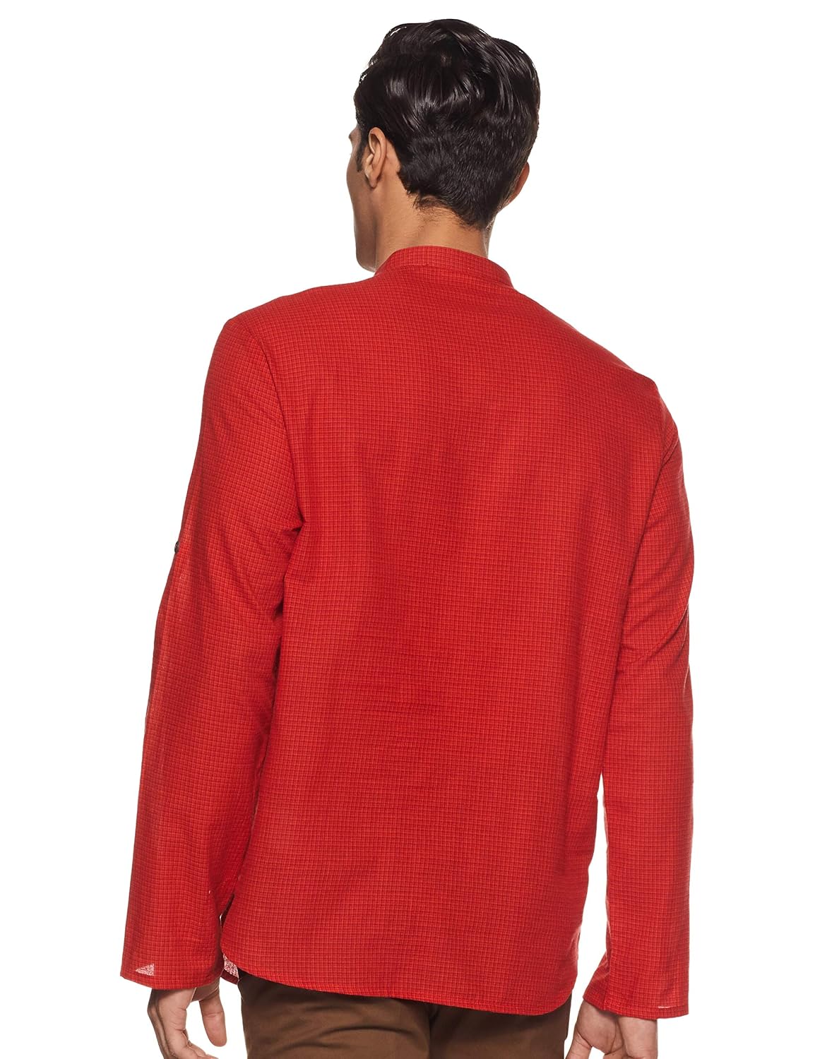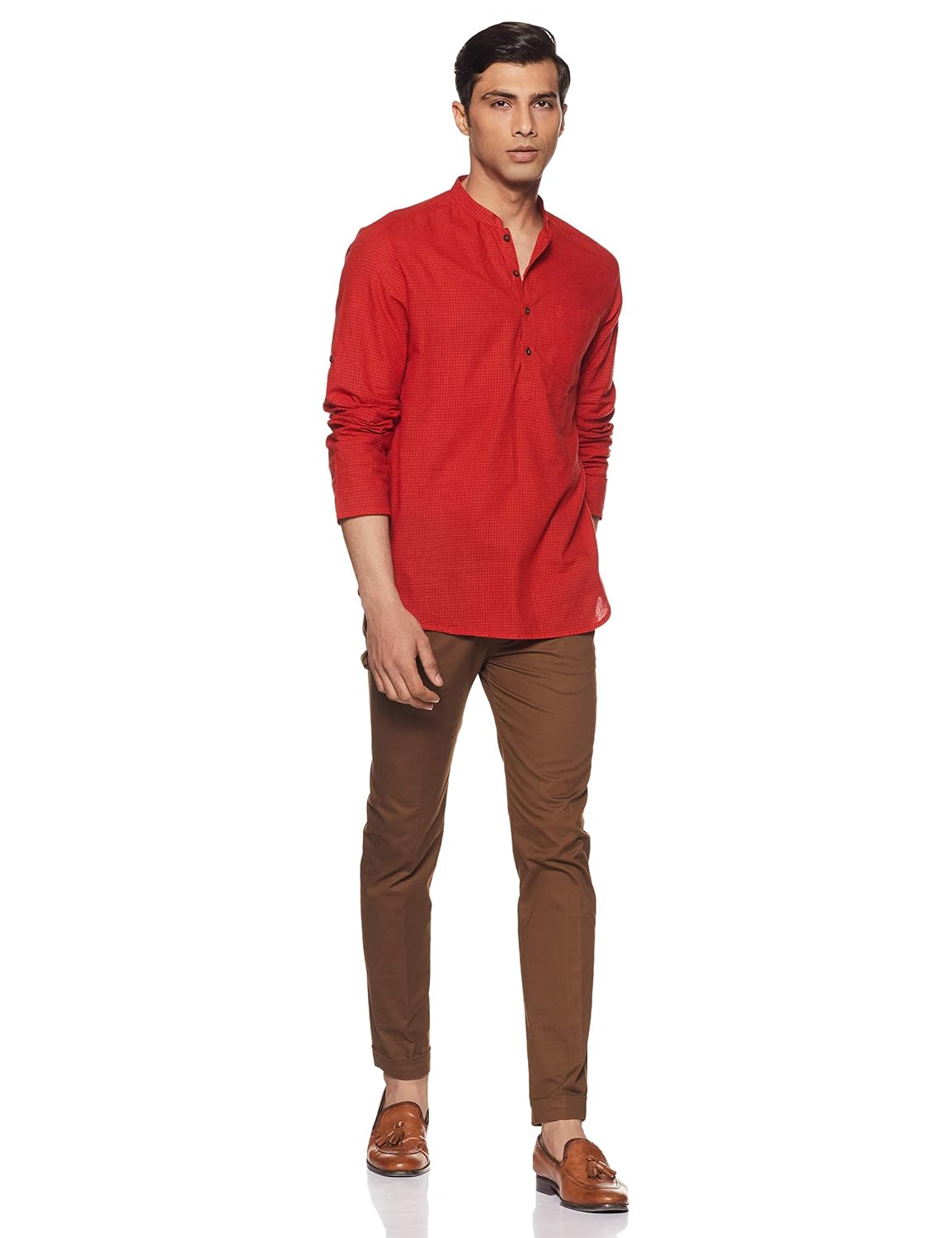 Red coloured kurta for men Made out of cotton fabric featuring a self Design pattern along with comfort fit.